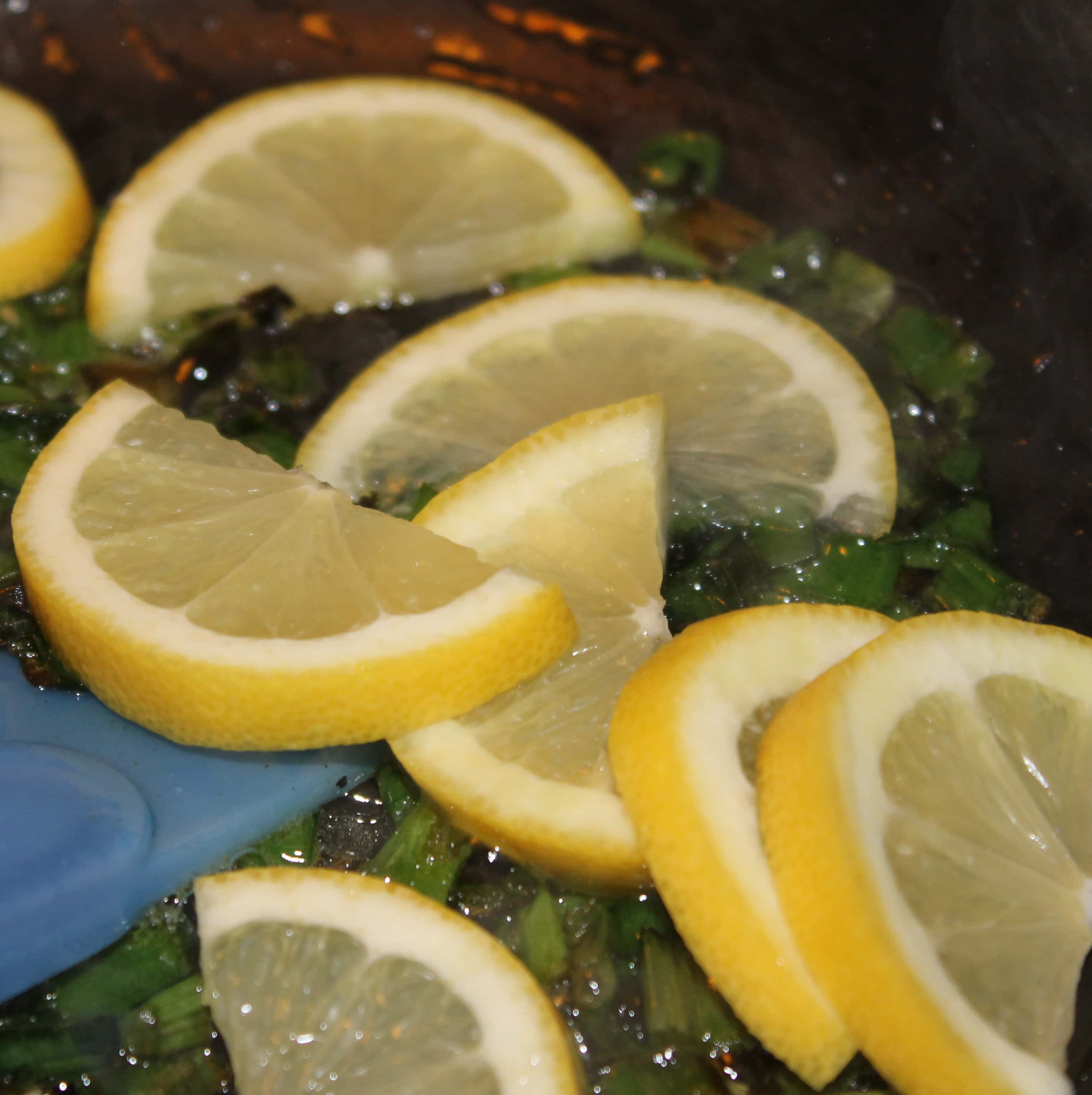 - Add the lemon slices and cook for another 2 minutes.