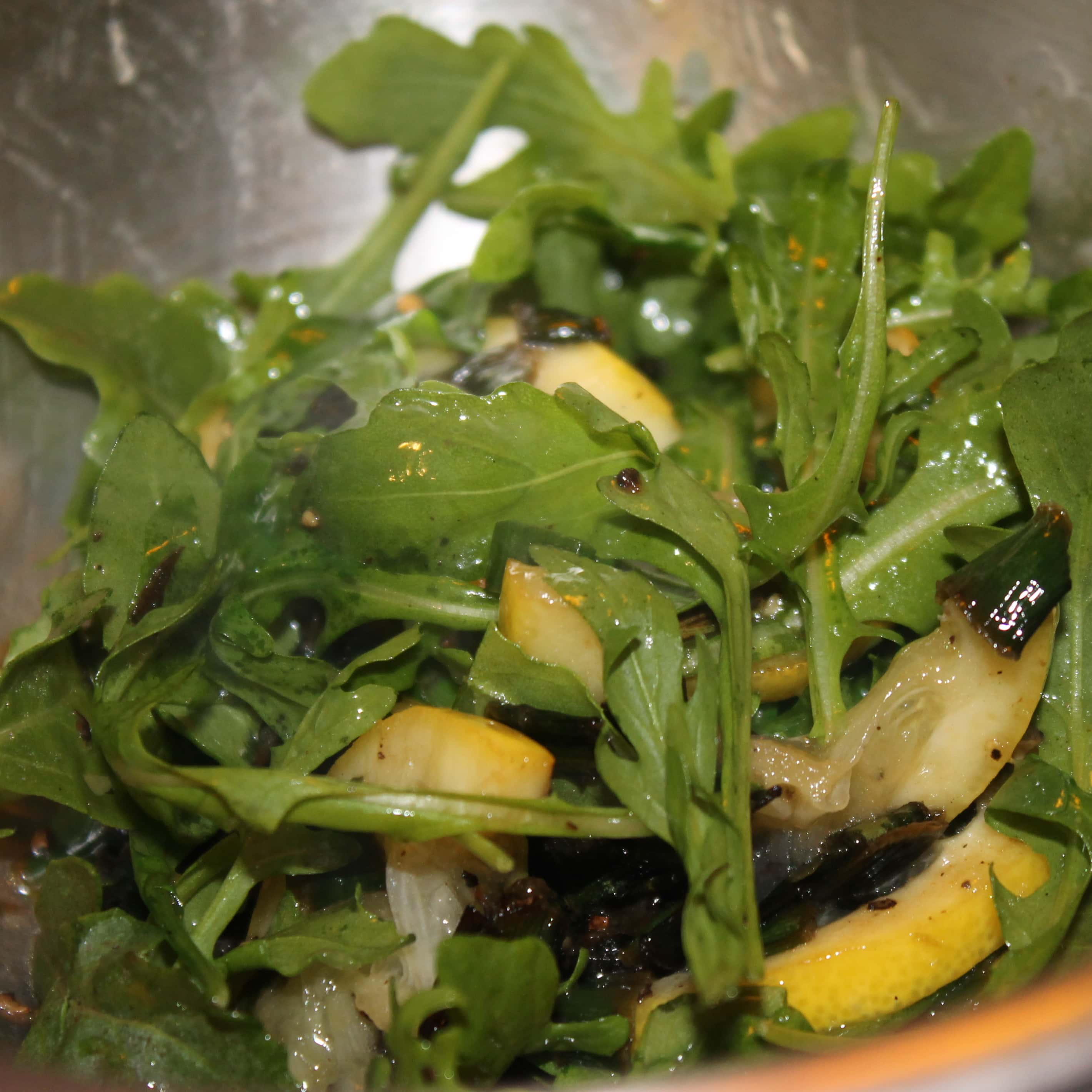 The arugula salad was fantastic. I would double the amount of arugula you use though because it left me wanting more. Who knew green onions and sauteed lemons were so delicious?