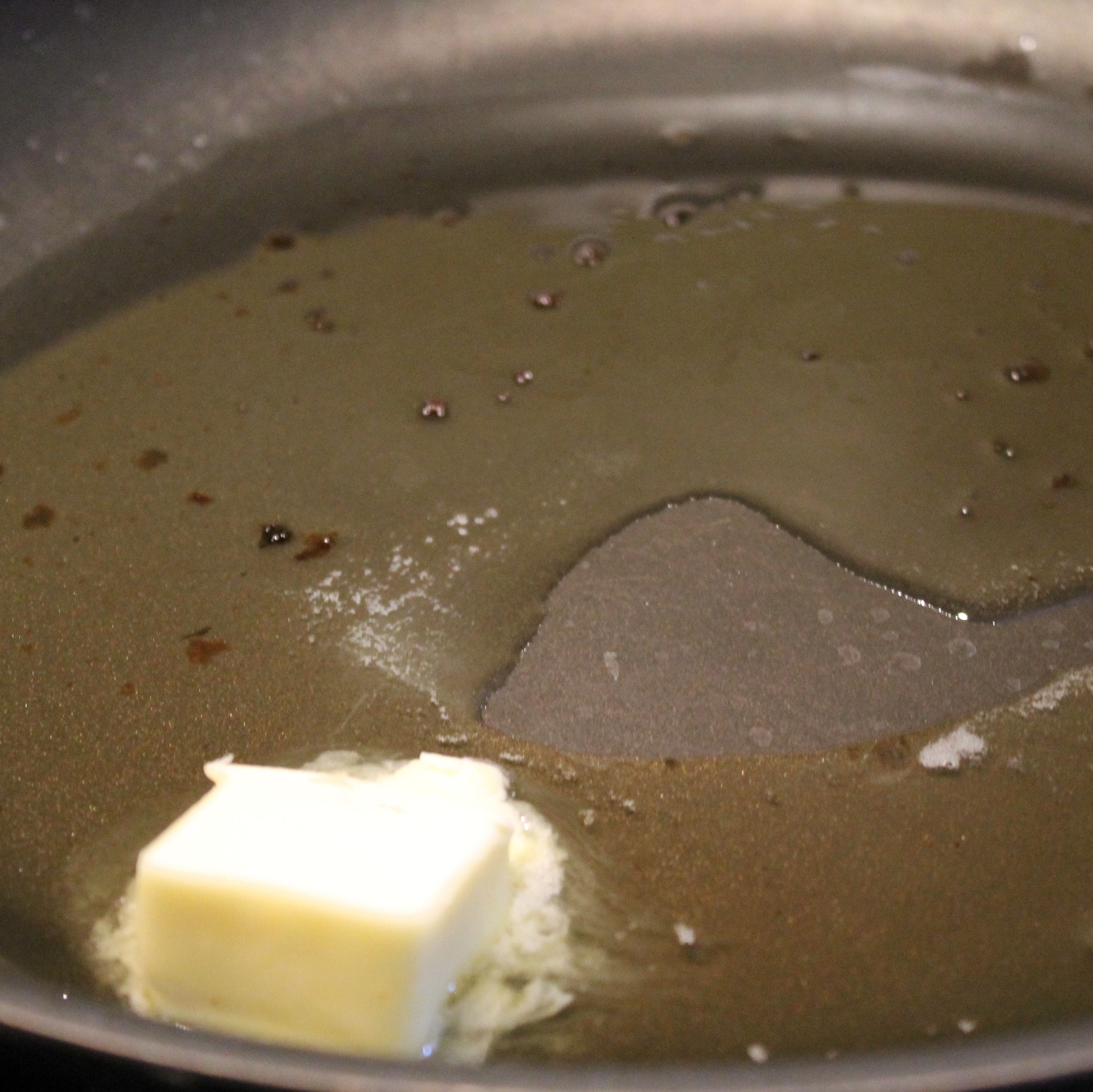 - Pour the bacon fat from cooking the bacon into a sauté pan. Add 1 tablespoon butter.