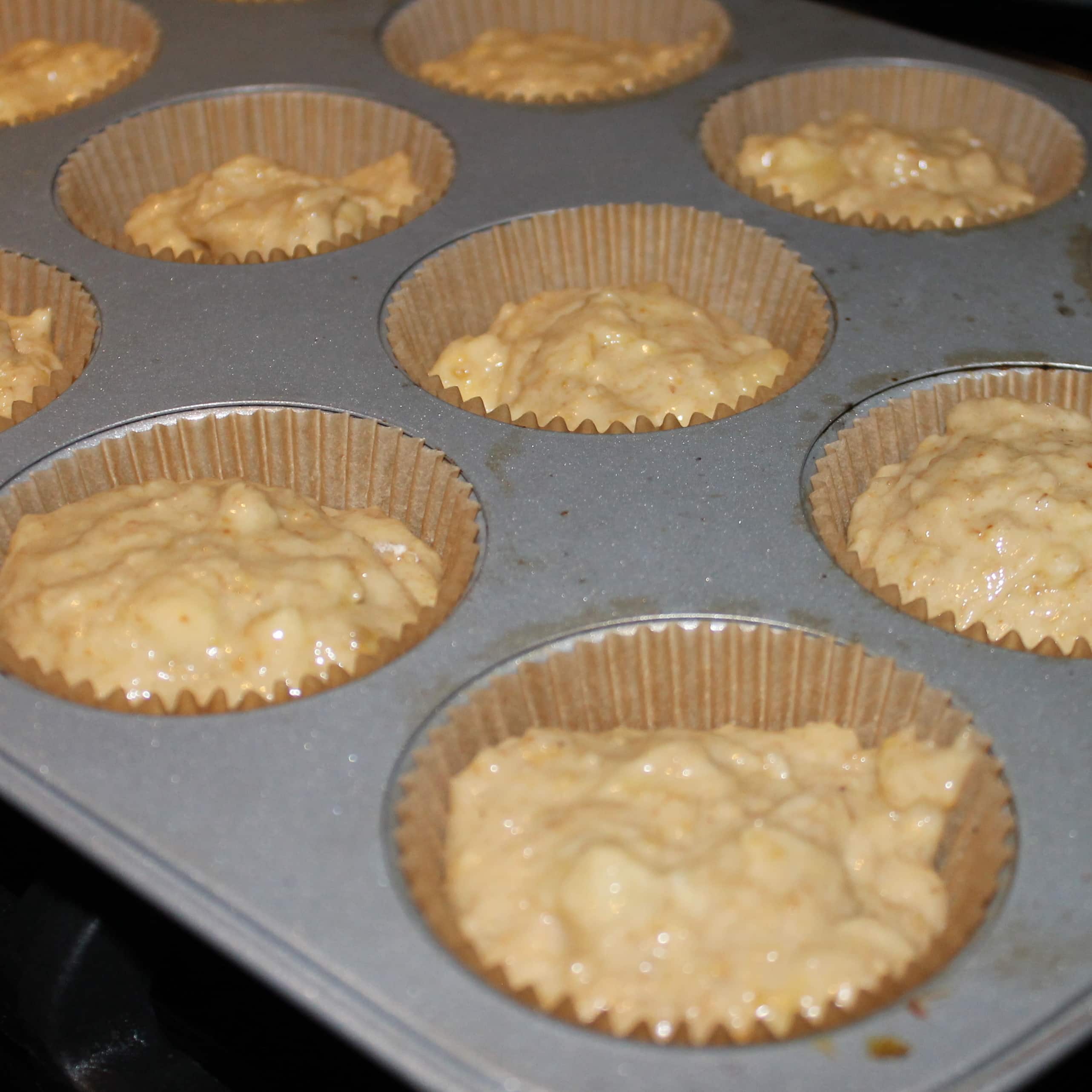 Ingredients (makes 12 cupcake-sized muffins, of 6 large muffins):
