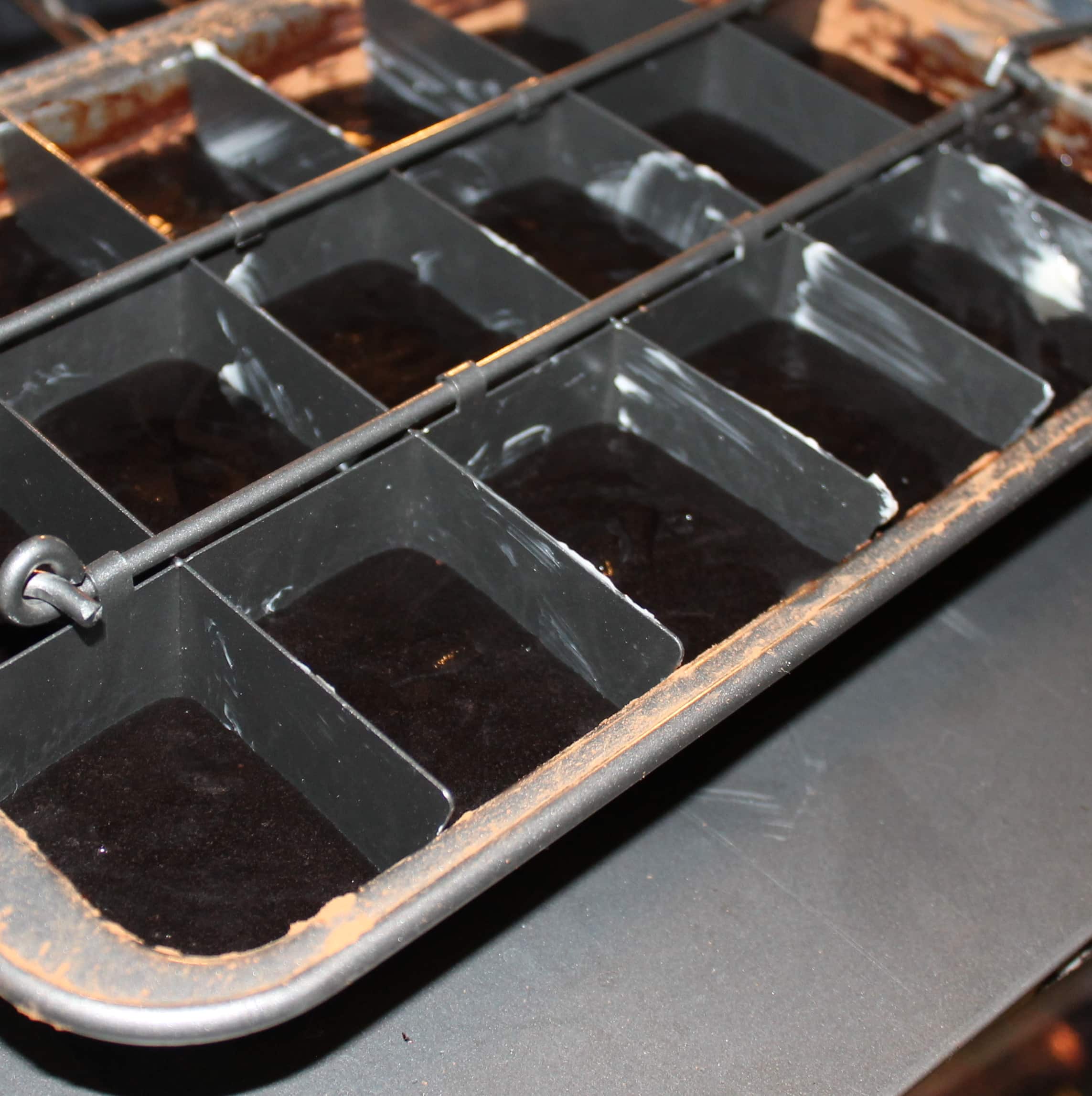 Pour the batter into the prepared pan. (I used one of those brownie pans that cuts them up perfectly while they bake. You can just use a normal pan.)