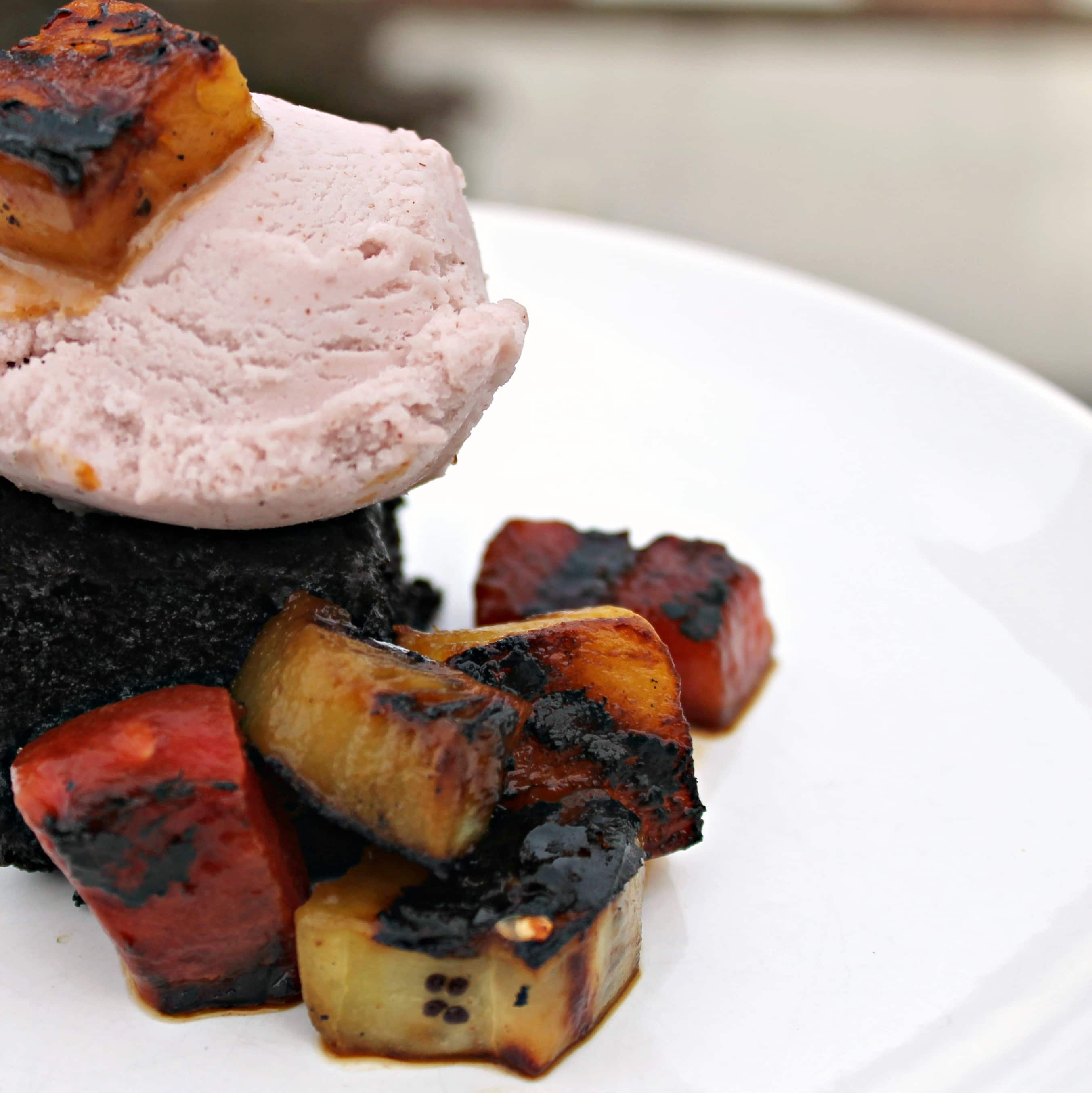 The brownies are rich but aren’t overly sweet and have a touch of saltiness to them. Fruit when grilled caramelizes adding a extra bit of sweetness. And the ice cream adds a nice creaminess and ties it all together.