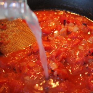 - Add the clams to the sauce, cover, and reduce heat to medium.