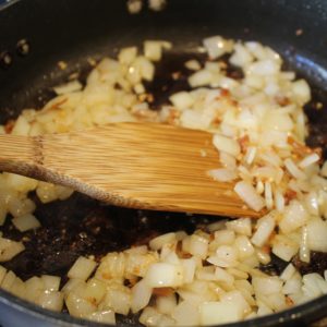 3. Add the onion and garlic to the saute pan and cook, stirring for 2 minutes.