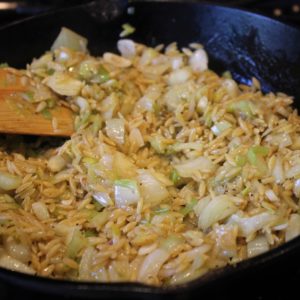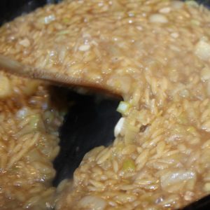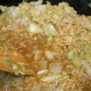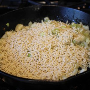3. Add in the orzo and toast for another 3 minutes, until the orzo begins to brown up.