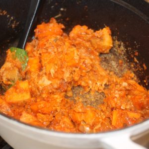 African Peanut Stew  (or Groundnut Stew) is a wonderfully hearty dish that originates in West Africa. Ingredients vary widely, but generally include a broth of ground peanuts and tomatoes with other vegetables served over rice. The dish can be made with chicken, but when omitted, this stew is a protein-rich vegan dish on its own.