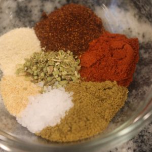 - If using, prepare your seasoning blend. Stir together the cumin, chili powder, smoked paprika, onion powder, garlic powder and salt.