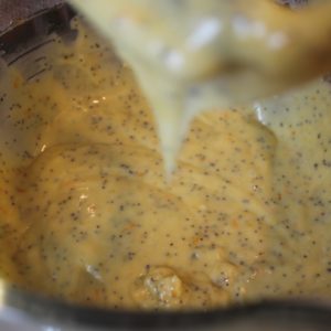 Juice the orange and lemon into a measuring cup. You should have a bit over 1/4 cup juice. If you have less than that, juice another lemon until you have more than 1/4 juice. Set aside.