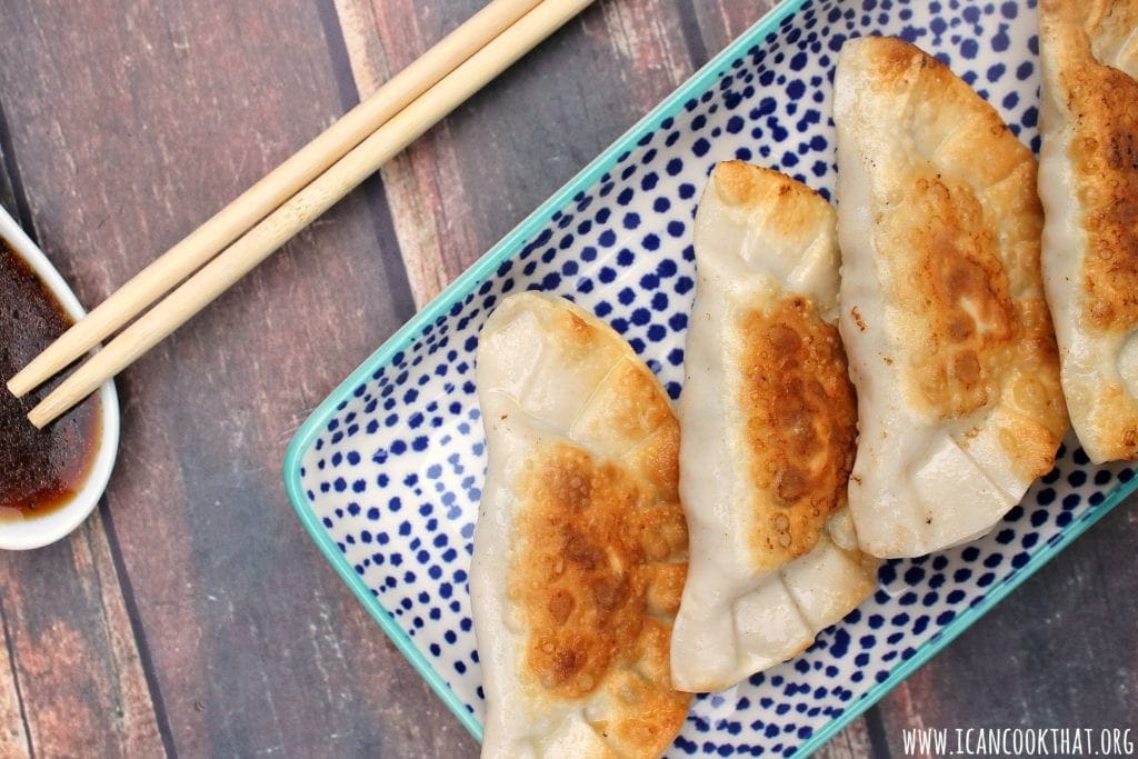 When ready to cook the dumplings, you can pan fry, steam, or boil the dumplings straight from the freezer. I personally like mine pan fried, so I’ve included those directions: Heat 1 tablespoon vegetable oil in a saute pan over medium-high heat. Add 6 dumplings to the pan, without overlapping the dumplings in the pan. Cook for 2 minutes without moving the dumplings. Flip the dumplings and cook for another 2 minutes. Very carefully add in 1/3 cup water (oil and water don’t mix and it will splatter so be careful and have the lid ready!) and cover immediately with a lid. Cook for 5 minutes. Turn off the stove and carefully remove the lid. Serve immediately.