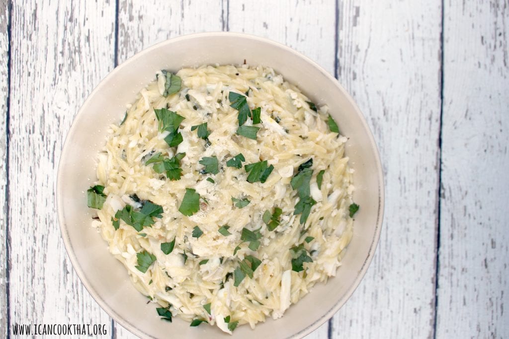 This recipe for Lemon Orzo with Crab and Herbs moves fast, so I suggest getting all of your ingredients out and prepared before beginning!
