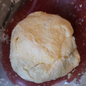 3. When its combined, use your hands to knead and fold the dough within the bowl until it becomes less sticky. Don’t add more flour, just keep working with it for 5 to 10 minutes.
