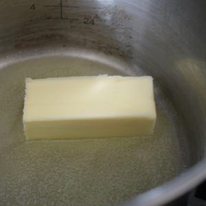 Melt the butter over medium low heat and set aside to cool for 5 minutes.