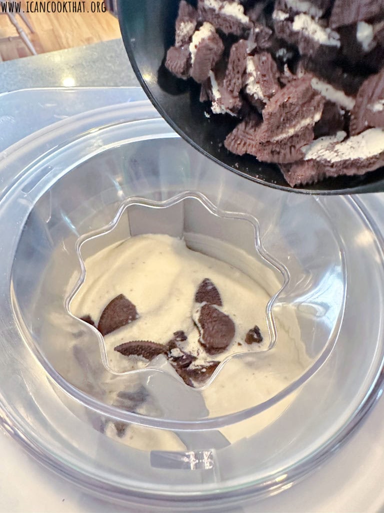 Churn for another 5 minutes, or until the Oreo pieces are fully incorporated.
