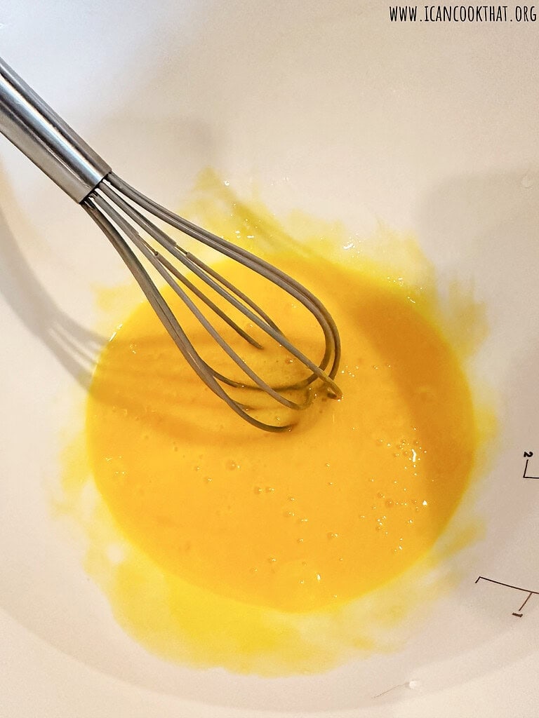 • While waiting for the mixture to simmer, add your egg yolks to a bowl; reserve the egg whites for another use. Whisk the yolks until combined.