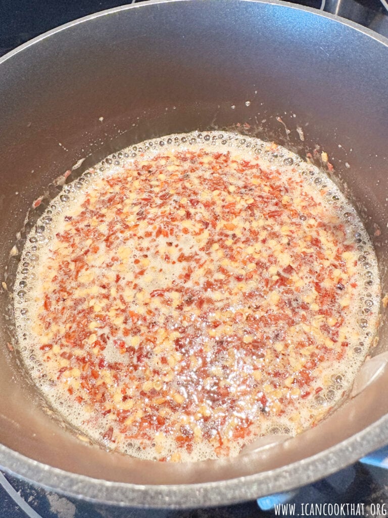 • Bring to a simmer. Let simmer for 5 minutes, then remove from heat.