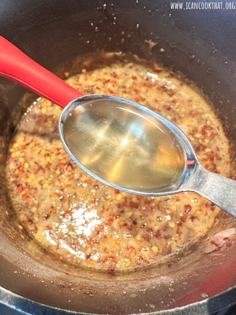 • Let steep for 15 minutes, then taste to see if it has enough spice for your liking. If there is not enough spice, add another chili pepper or teaspoon red pepper flakes, bring to a simmer, and let cool again. If there is too much spice, add a drizzle of regular honey until you reach your desired heat level.