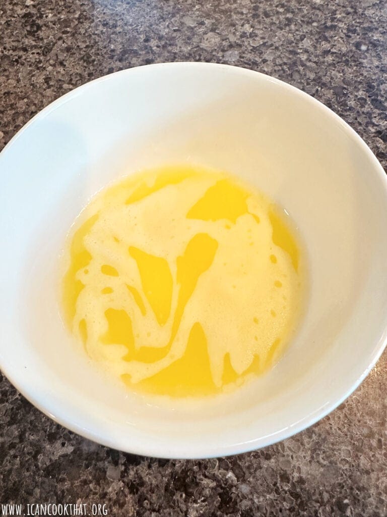 • While waiting for your oven to preheat, add your butter to a small bowl and microwave in 20 second increments until melted.