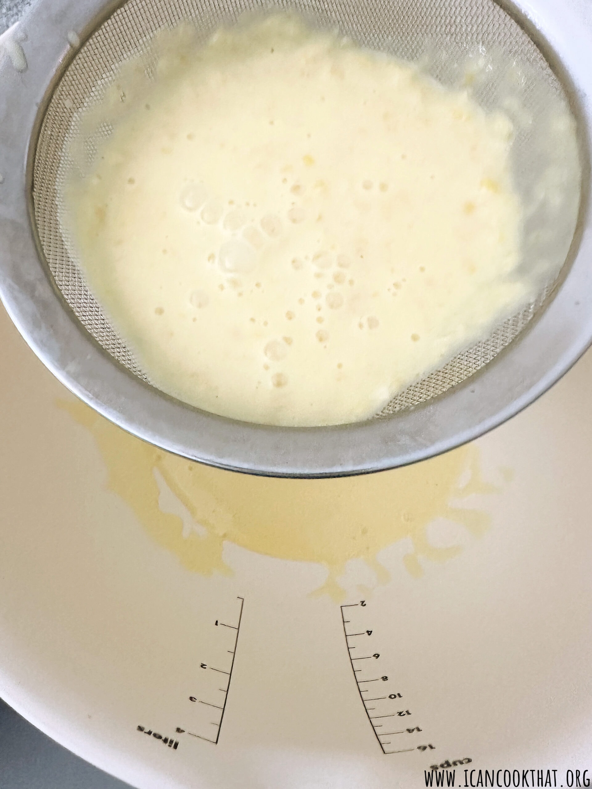 Place a fine mesh sieve (paid link) over a bowl and pour the mixture through the sieve, pressing on the solids to get out as much of the liquid as possible. Discard the solids.