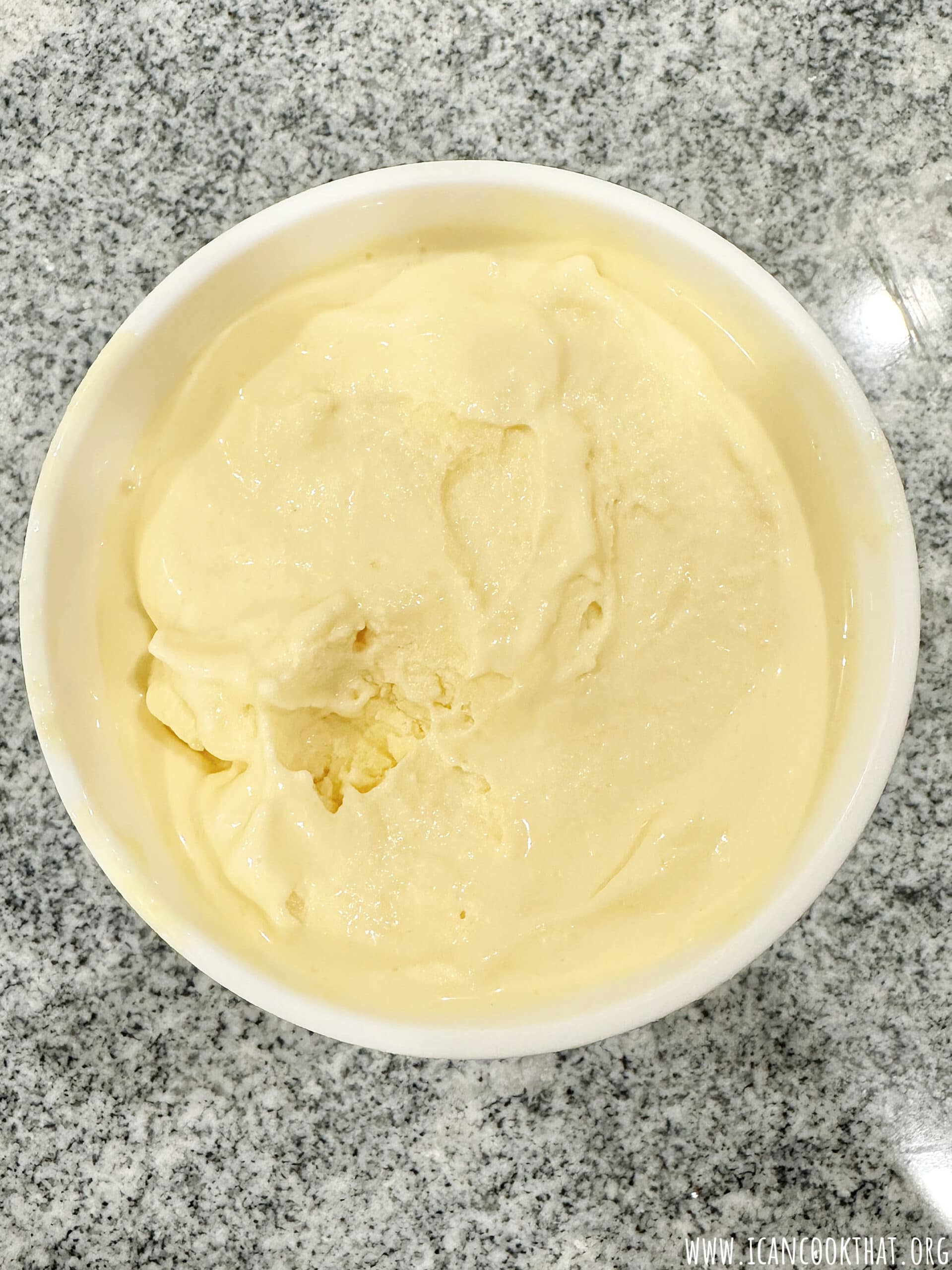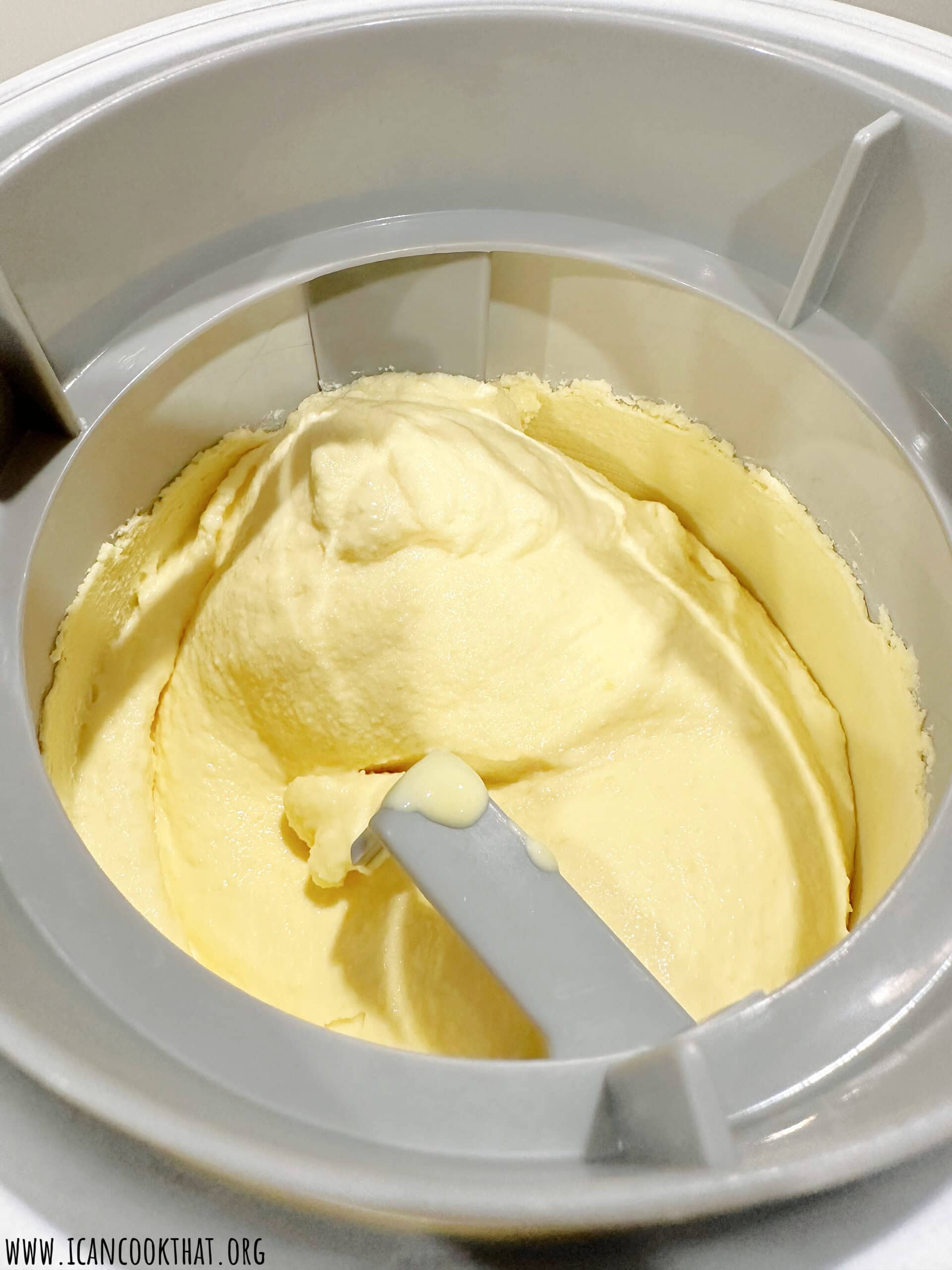 - Follow the manufacturer’s instructions to churn into ice cream, or until it resembles soft serve ice cream, about 15-20 minutes.