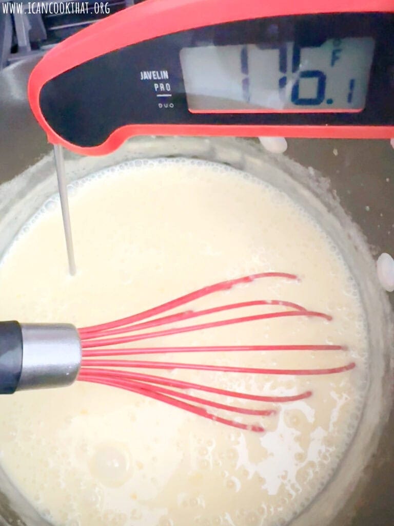 Cook over medium-low heat until the mixture reaches 175 to 180 degrees F (my go-to instant read thermometer – paid link), then remove from heat.