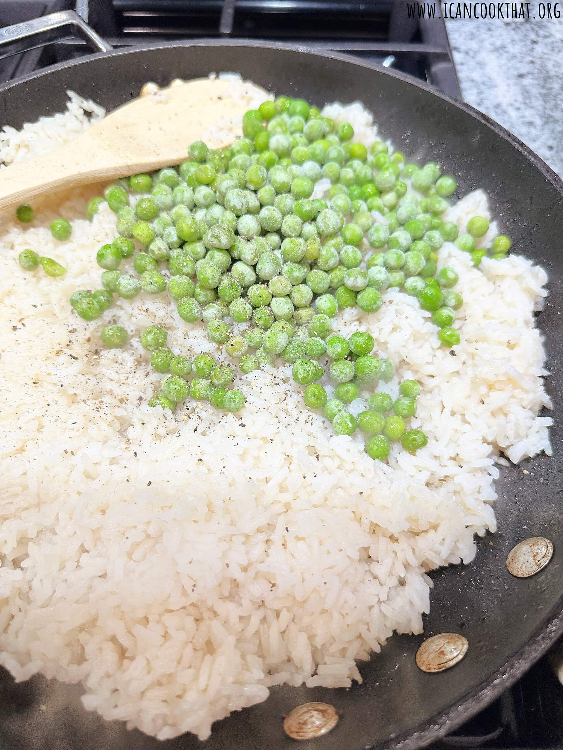 - To make the Fried Rice Carbonara, first cook your rice and set it aside.
