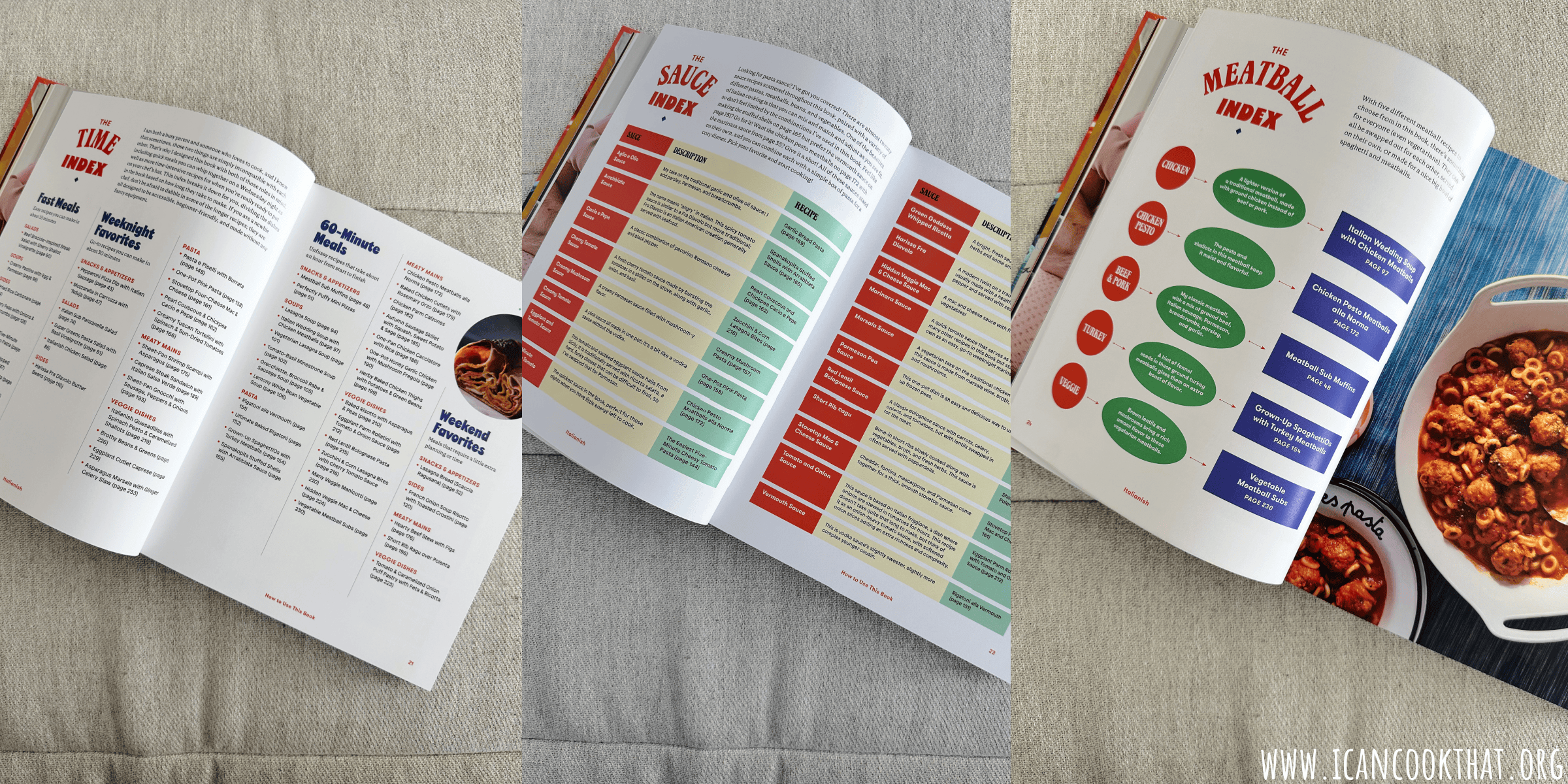 The cookbook includes a bunch of indices that make this cookbook so incredibly useful. There is a time index so you can quickly scan recipes based on how much time you have – some recipes can be made in as little as 15 minutes! There is also a sauce index and a meatball index to help you better mix and match to create multiple versions of the recipes within the cookbook. Italianish also includes three “intermezzos” which highlight cicchetti (small snacks originating in Venice), fresh pasta, and farro bowls.