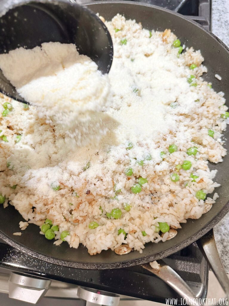 - Add in the Parmesan and stir until well incorporated, about 3 minutes, then turn off the heat.