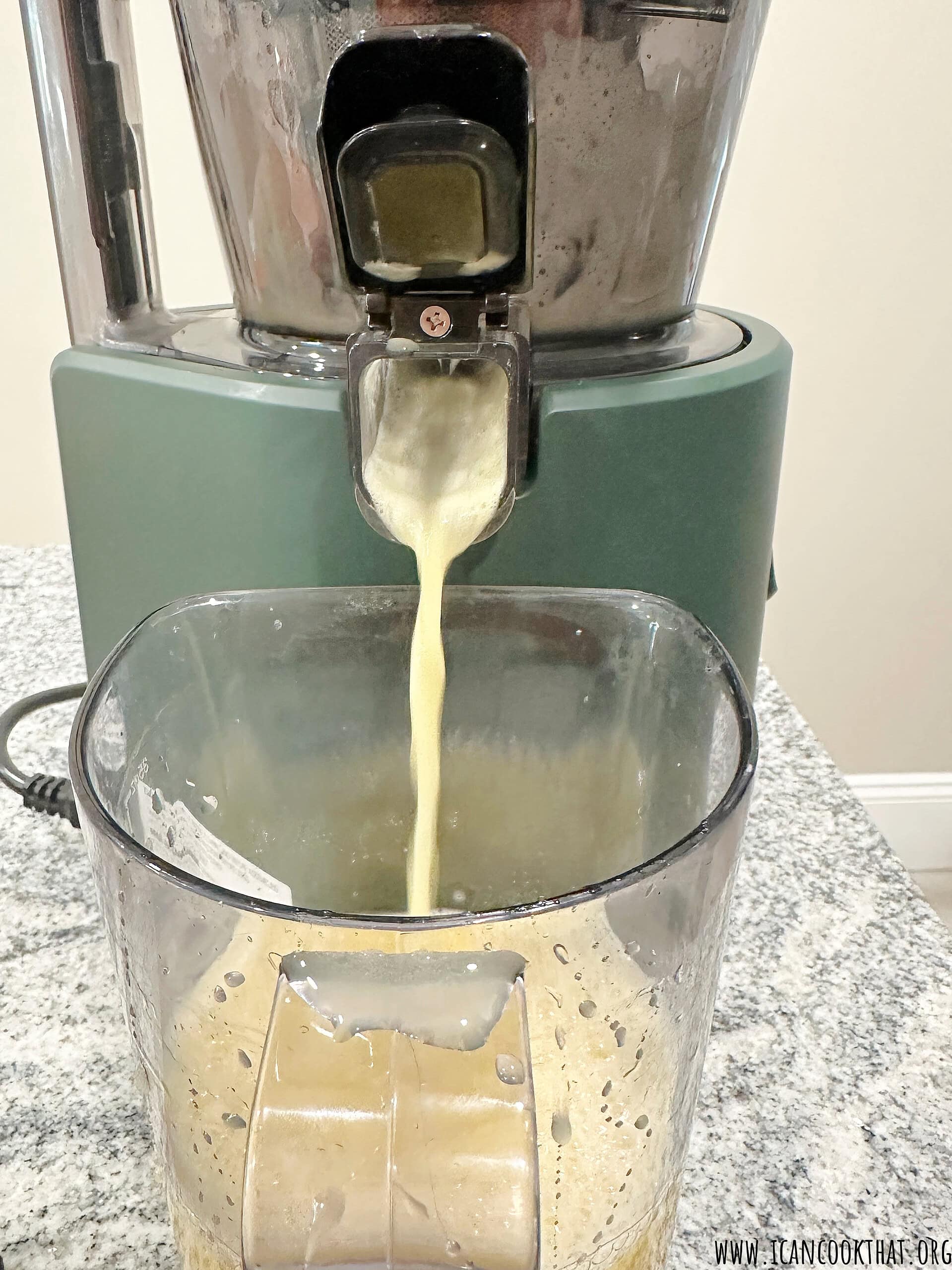 • Once all the juice is extracted, turn off your slow juicer. Pour the remaining juice into your pot and turn the pot on over medium heat.