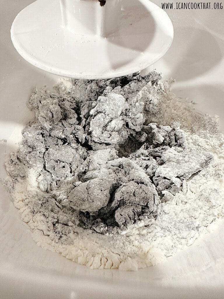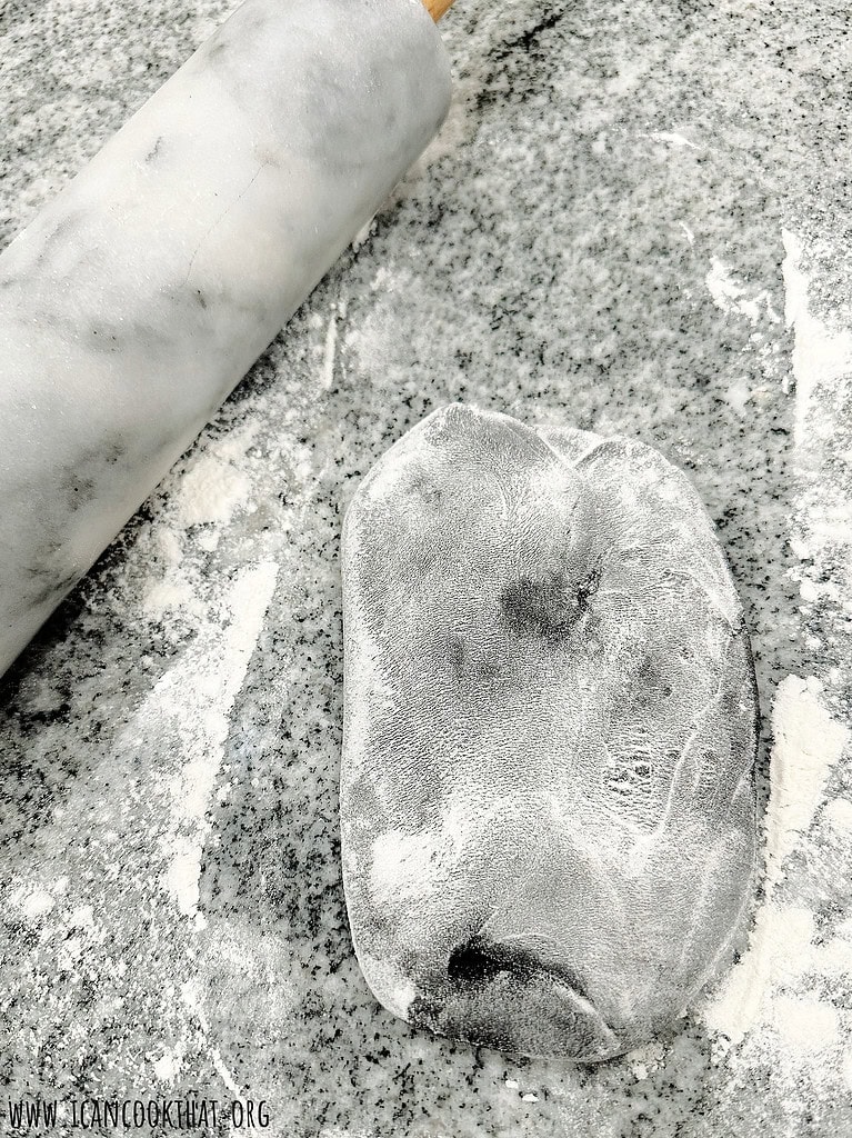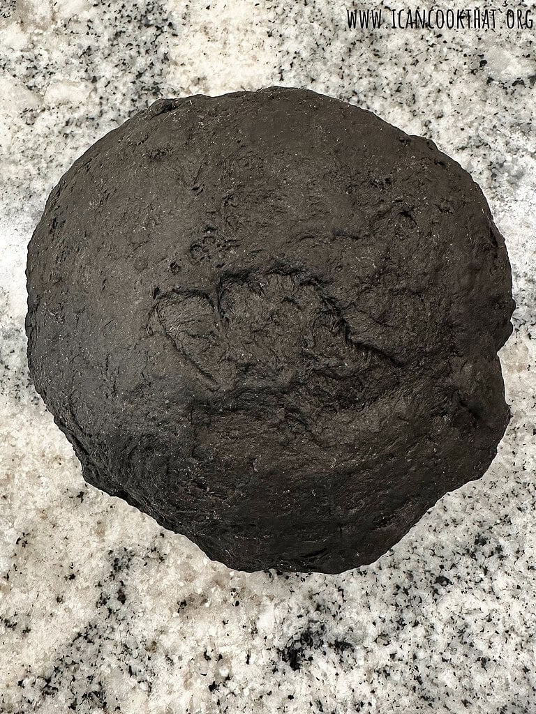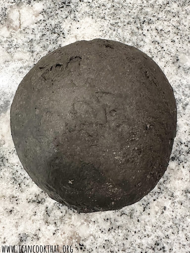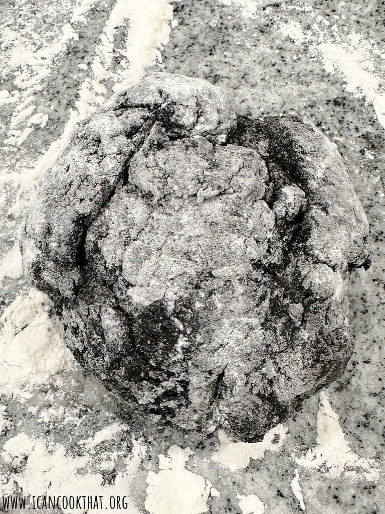 Once the dough has formed into a ball, turn out onto a lightly floured surface, like your countertop.