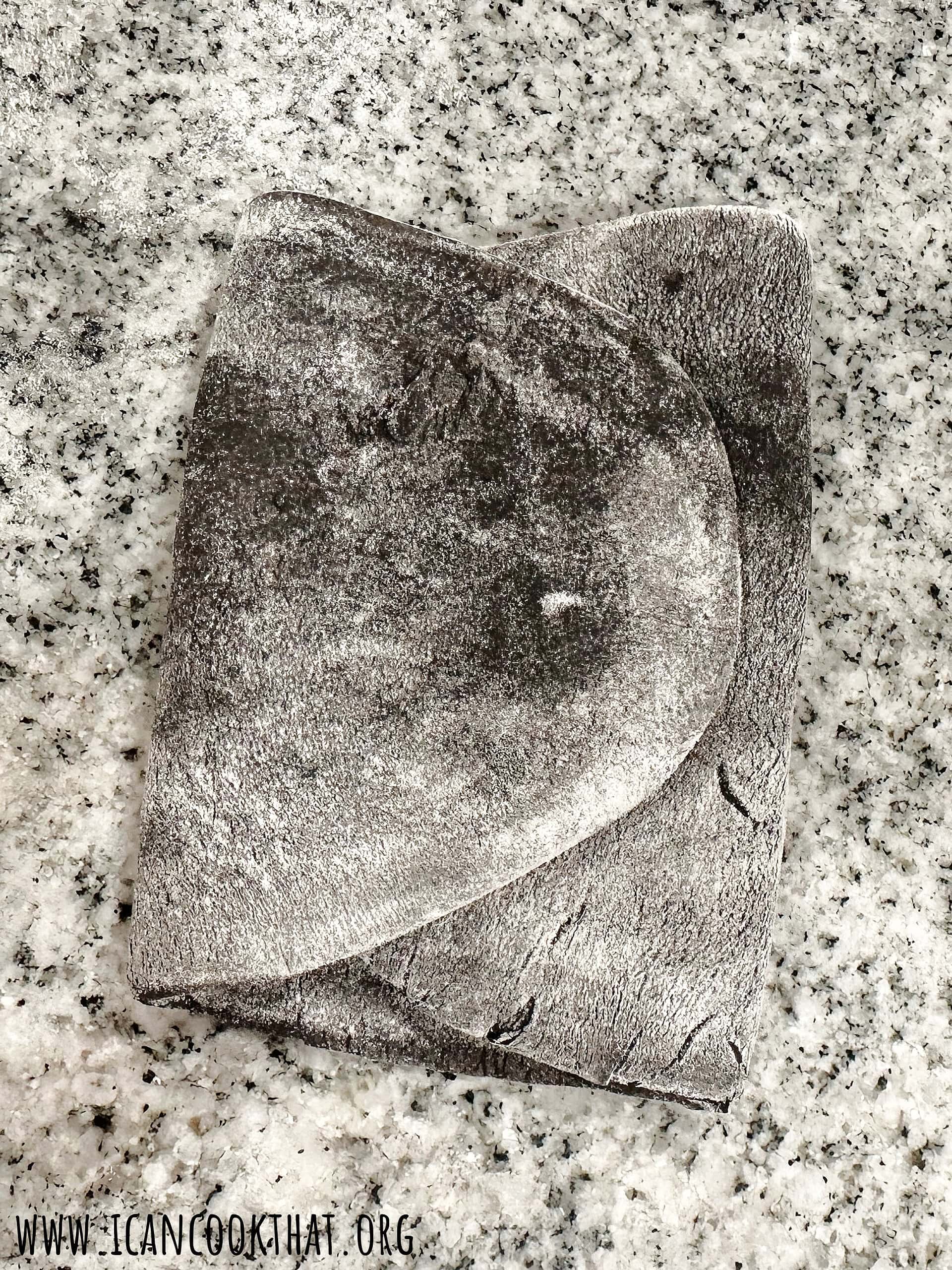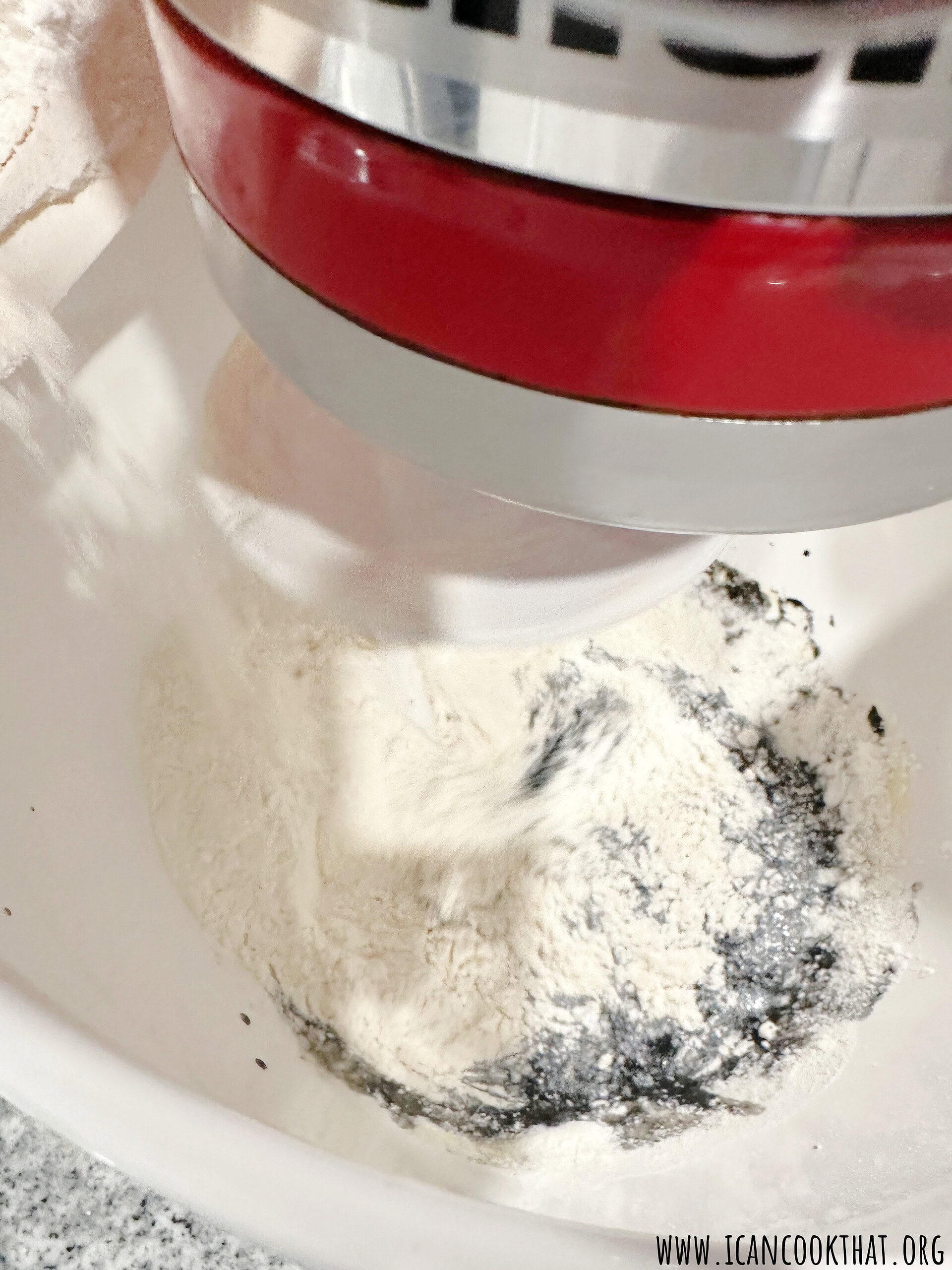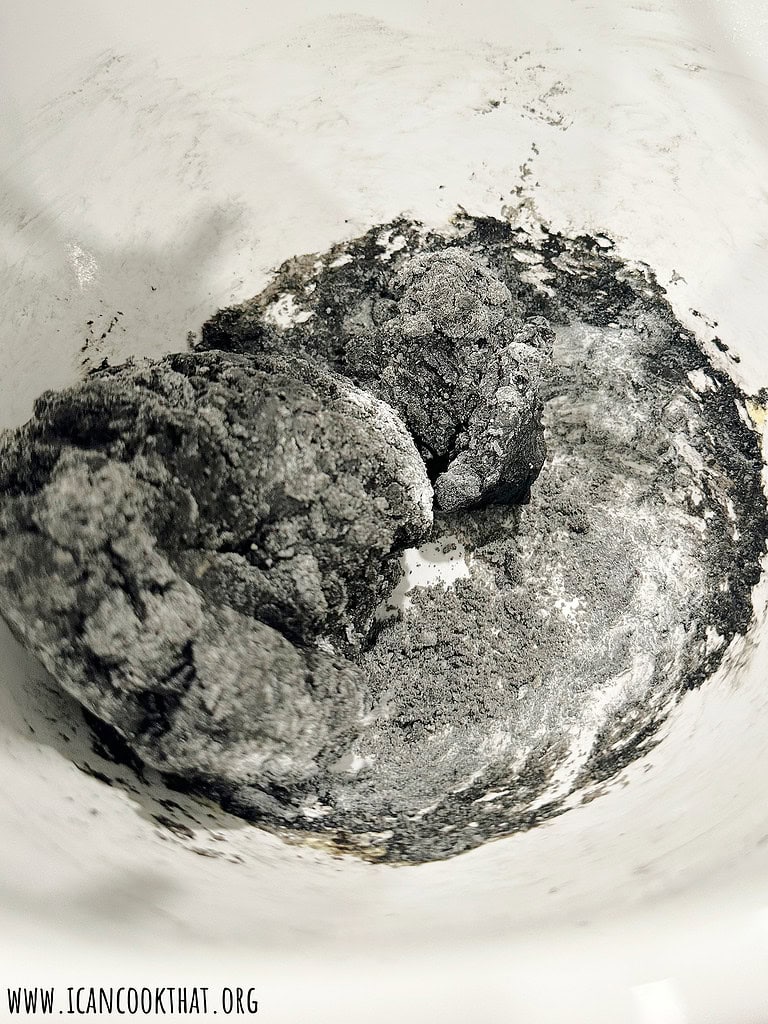 Once the dough has formed into a ball, turn out onto a lightly floured surface, like your countertop.