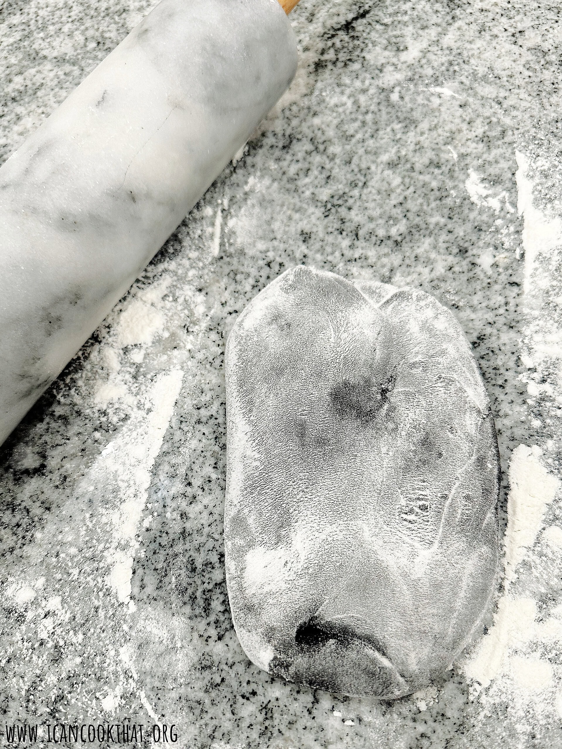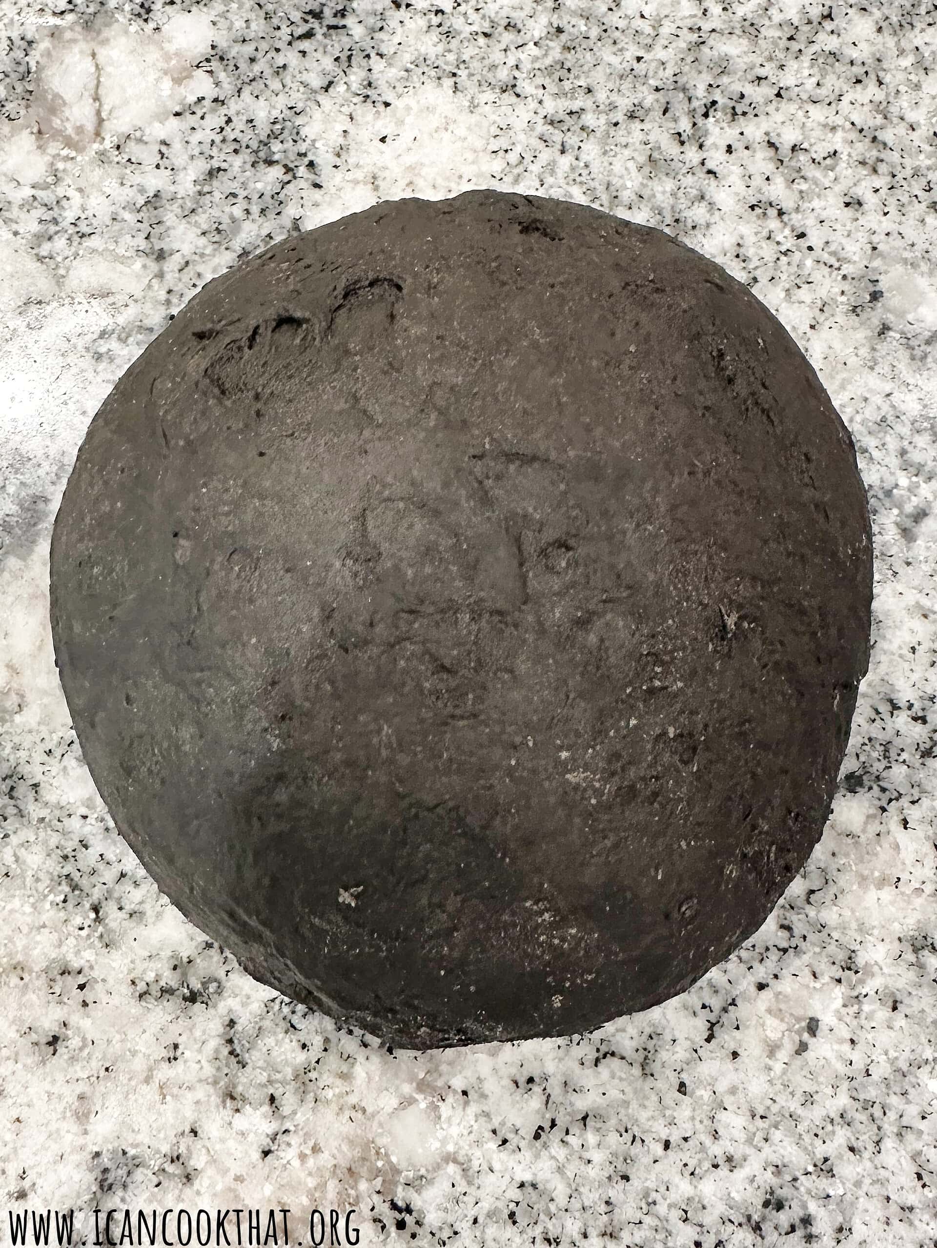 - Once the dough has formed into a ball, turn out onto a lightly floured surface, like your countertop.