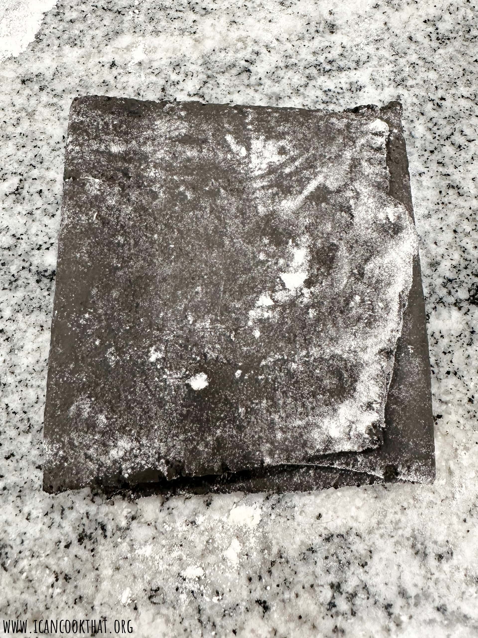 Use a rolling pin (paid link) to roll out the portion of dough on a lightly floured work surface into a rectangle.