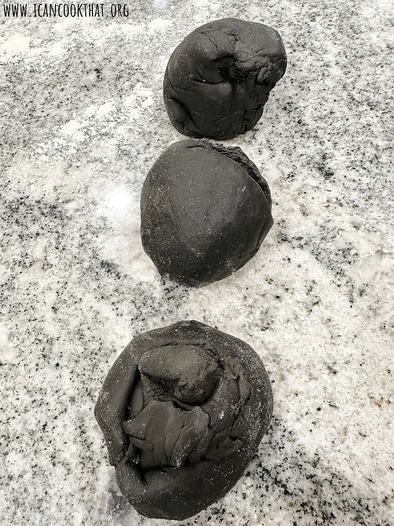Because cuttlefish ink is a really potent dye, I made this dough mostly in my stand mixer. To do the same, add the dough hook (paid link) to your stand mixer and slowly incorporate the flour into your egg mixture until it forms a ball, about 5 to 10 minutes.