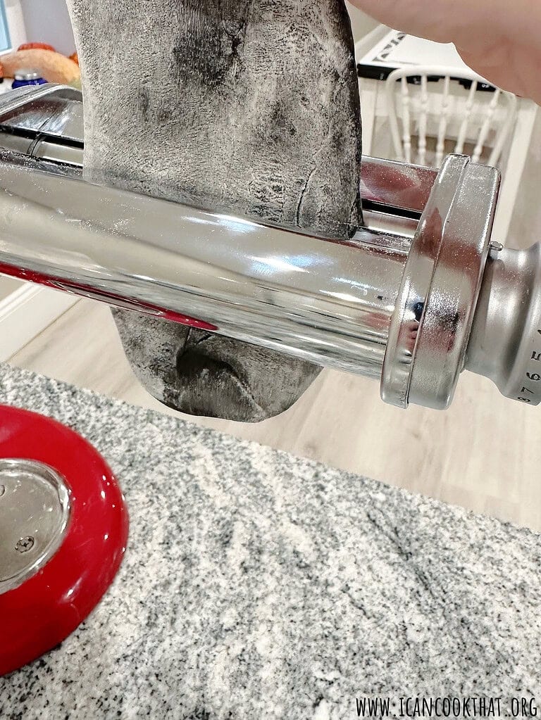 - At this point, you can hand cut your pasta or use a pasta cutting attachment as I did. If doing so, attach the fettuccine cutting attachment to your stand mixer and turn on the lowest setting.