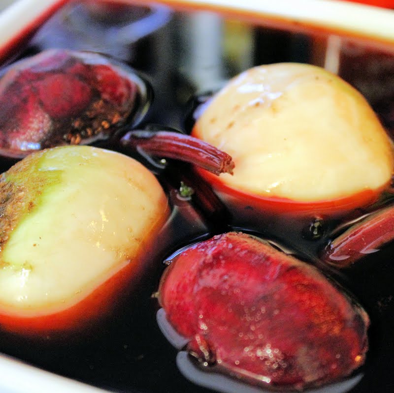 - When the liquid has boiled, remove from heat and add the beets to the liquid. Let sit for 15 minutes.