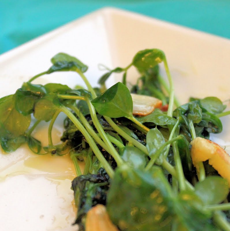 Pea tendrils (or pea shoots) are the leaves from a snow pea plant. They have a bit of a spinach-pea taste, delicate and very tasty. Before receiving them in my CSA share, I just thought they were used in a stir fry or as a topping. But these little guys are really delicious in a simple saute.