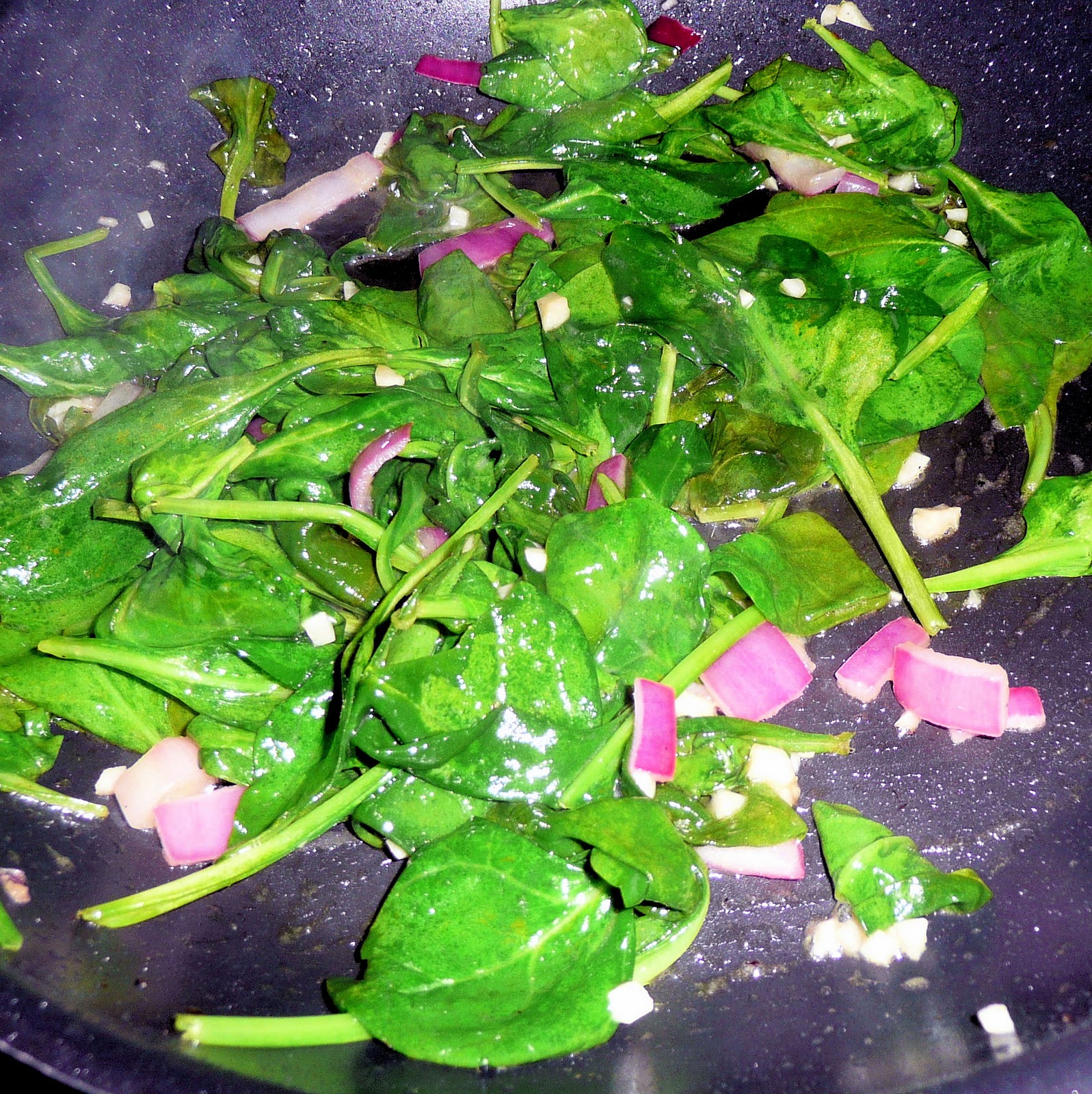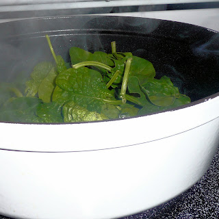 Heat a large pot or Dutch oven over medium-high heat. Add the spinach and 2 tablespoons water.