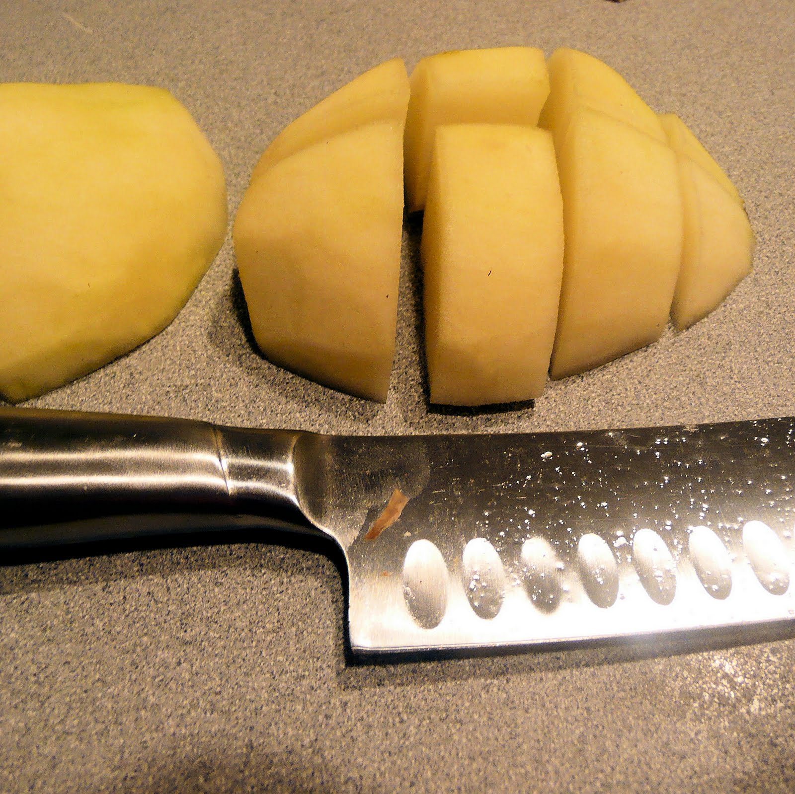 Cut in half and remove the seeds and stem. (You can use a melon baller or just a spoon)
