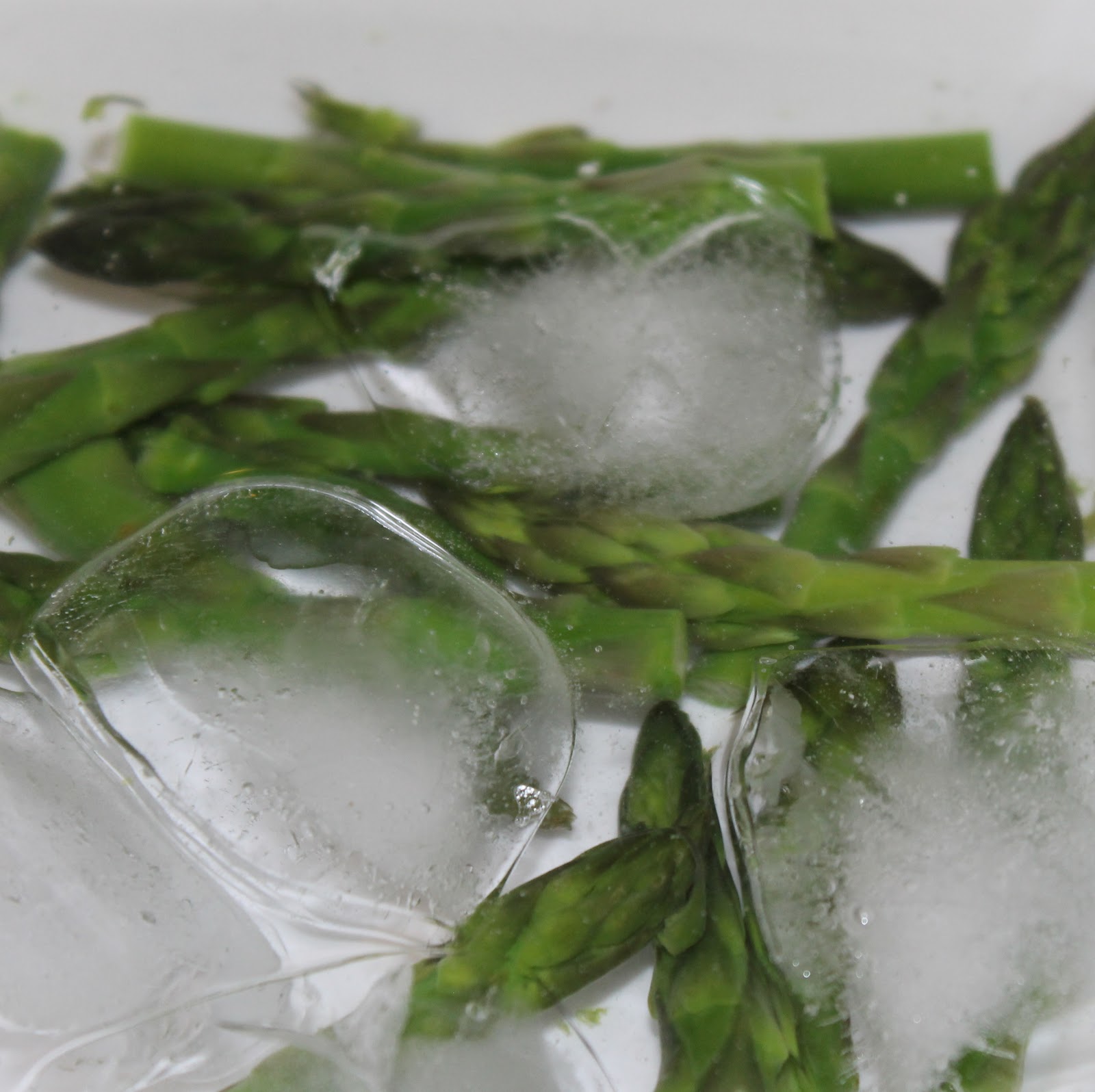 Bring a pot of salted water to a boil. Add ice water to a bowl.