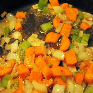 Add 2 tablespoons of olive oil to a dutch oven or pot. Heat over high heat and add in the onion and tomato, (I forgot about the onion, oops) and stir occasionally until soft, about 3 minutes.