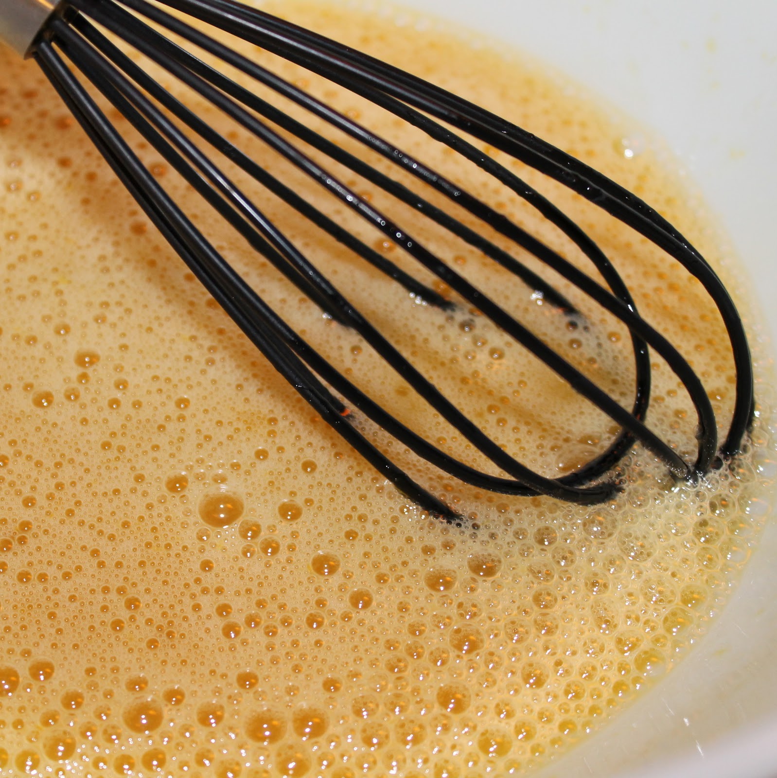 Begin by whisking together the eggs and honey vigorously until combined and fluffy.