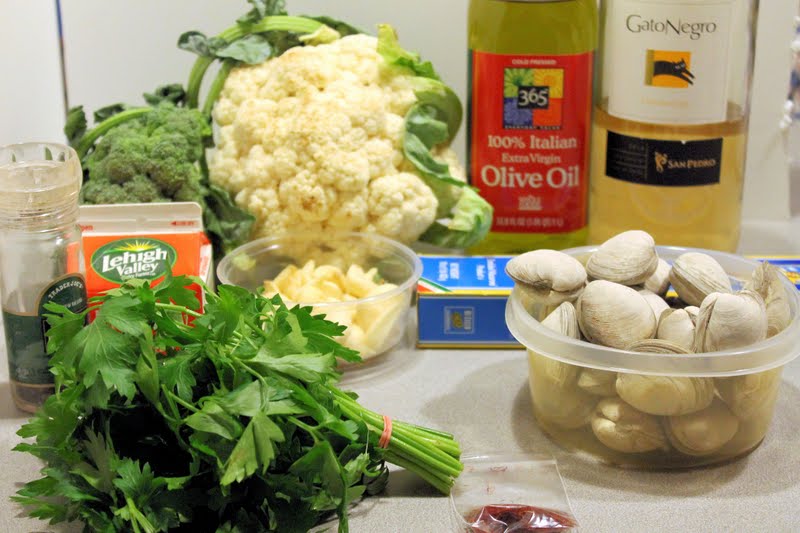 I am a huge Top Chef fan. So much that my parents bought me the Top Chef cookbook a few years back. However, when I moved, I stored it away and completely forgot about it. I recently found the cookbook again and came across Ilan’s dish: Fideos with Clams and Saffron. My CSA share this week came with broccoli, cauliflower and onion so I thought this would be a perfect way to use these ingredients. Note: I switched up the way this recipe was cooked, used less cream, and added onions and Parmesan. Otherwise, the recipe is pretty close to the original printed version.