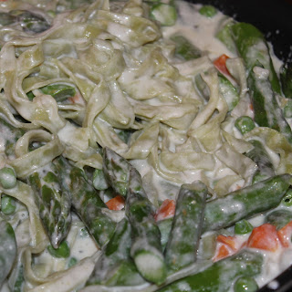 Asparagus this time of year is just perfect. It was still crisp and bright so it stood out through the cream sauce.