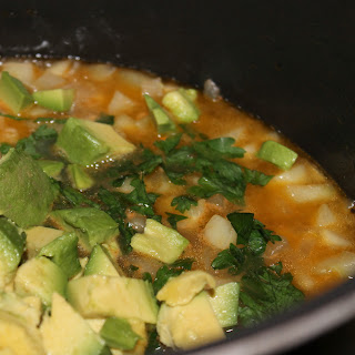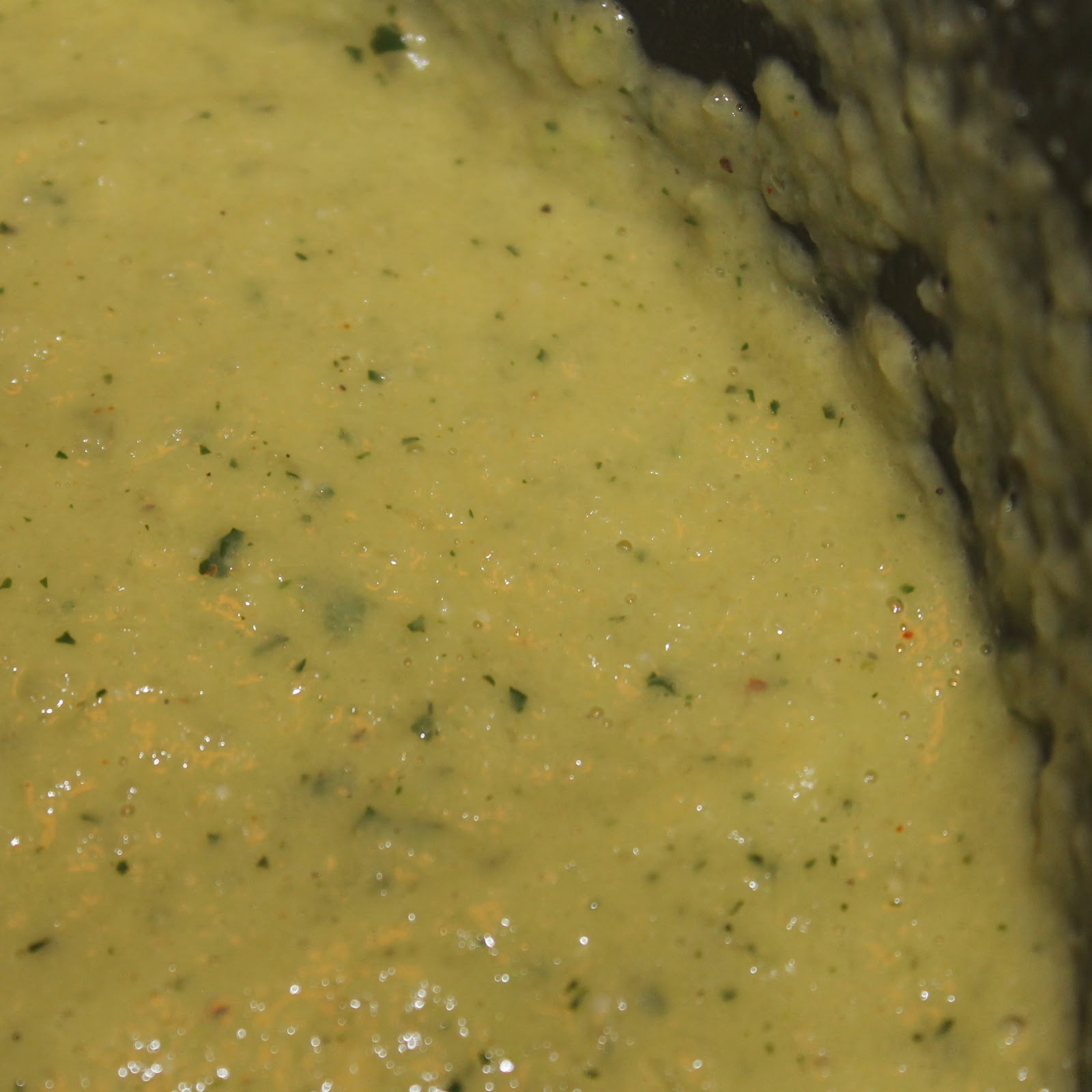 Add thesoupto a blender (be careful), removing the center of the top of the blender. Add the avocado and parsley.