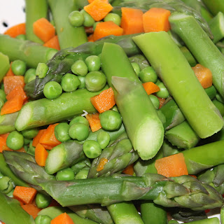 Your pot should now be boiling. Add the asparagus and peas and carrots to the boiling water and cook for 3 minutes.