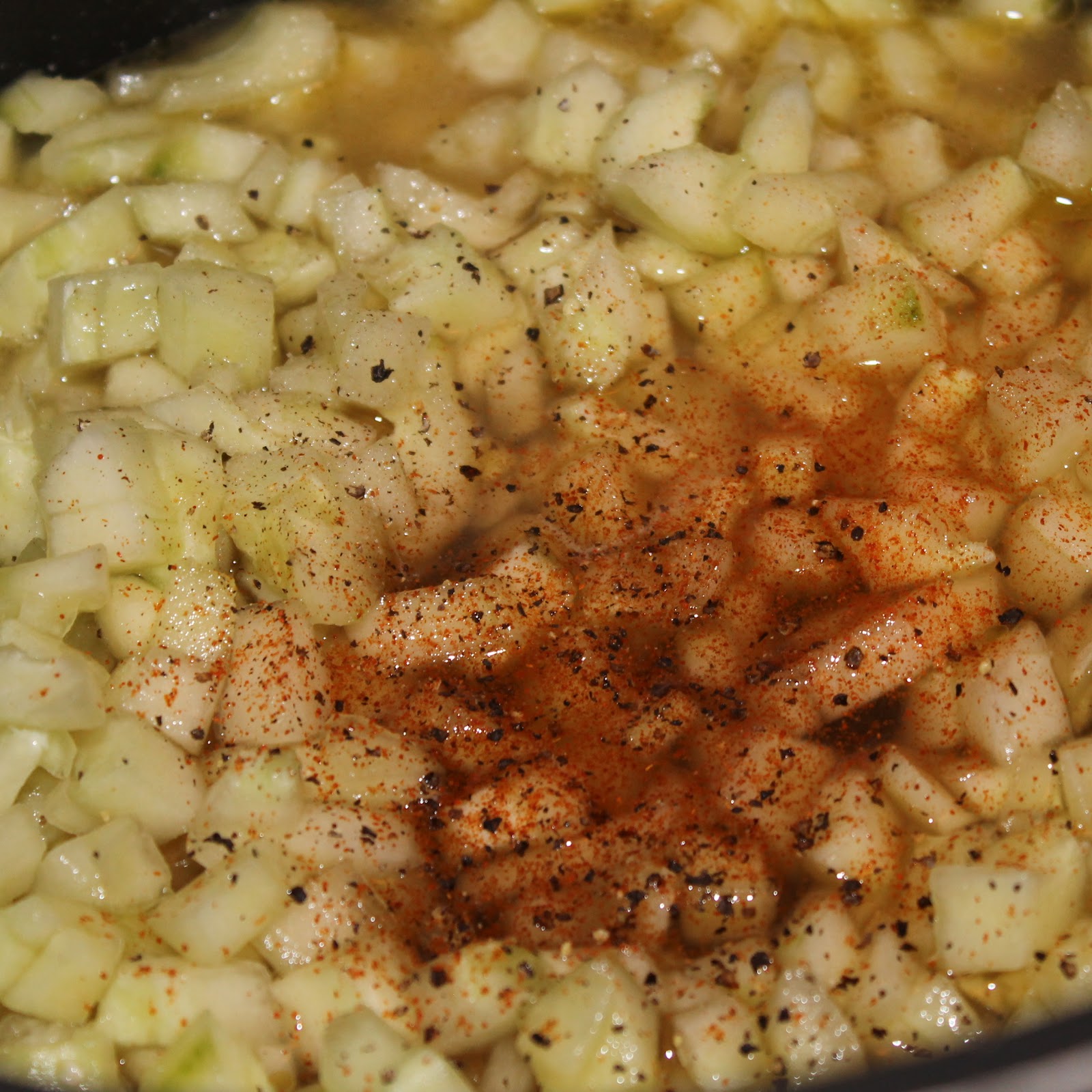 Add the lemon juice and cook for another minute. Add the cucumber, broth, salt, pepper, and cayenne (optional) and bring to a simmer.