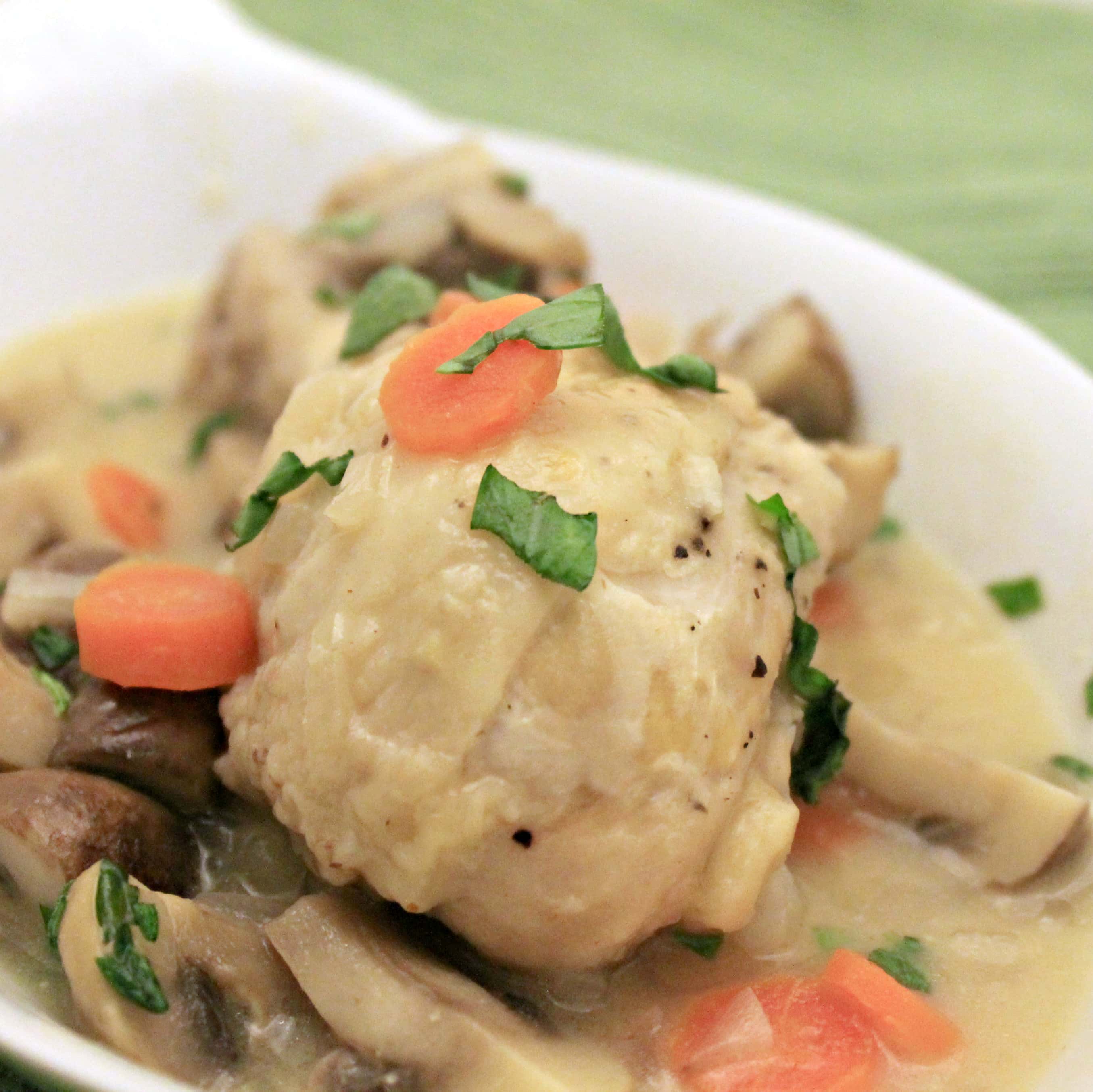 • Skinnylicious Chicken Pot Pie – Sauteed chicken breast, potatoes, mushrooms, onions, peas and carrots in a light cream sauce, topped with puff pastry