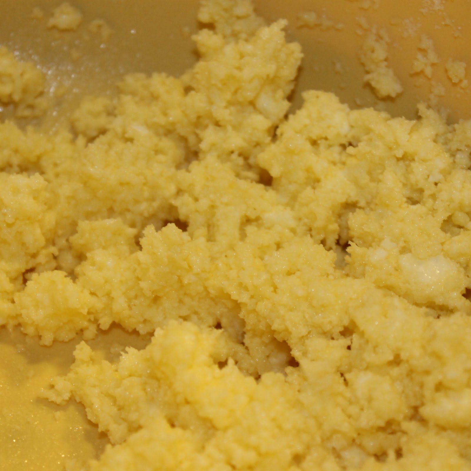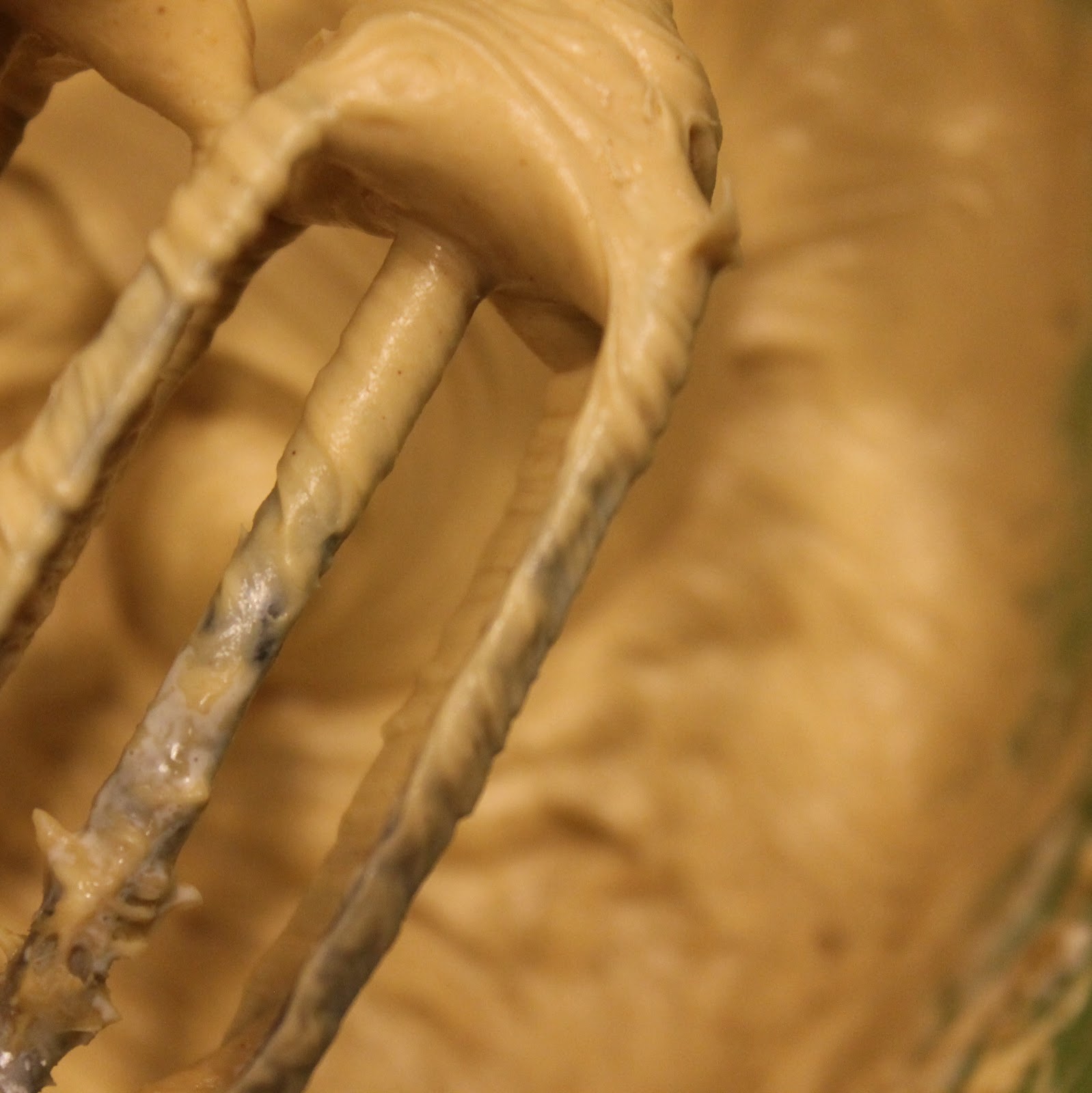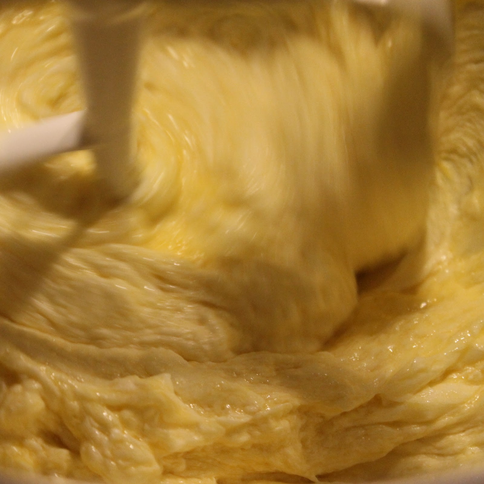 With the mixer running (if you’re using a hand mixer, you might need a baking buddy for this step), gradually pour the egg mixture into the butter mixture.