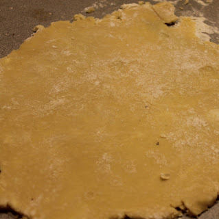 Refrigerate for an hour. Unwrap the ball after an hour. Preheat the over to 375. Split the dough in half, rolling out out half of the dough on a floured surface.