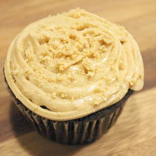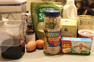 I found this recipe on Food Network and thought it was perfect. It even incorporated coffee into the recipe (one of my favorite tricks) to heighten the chocolately flavor. I decided to try to make my own peanut butter icing though, to make it more my own.